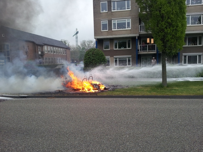 De politie heeft de Van Kleffenslaan ten tijde van de brand afgesloten voor het verkeer. Over de oorzaak van de brand in het wagentje is niets bekend.