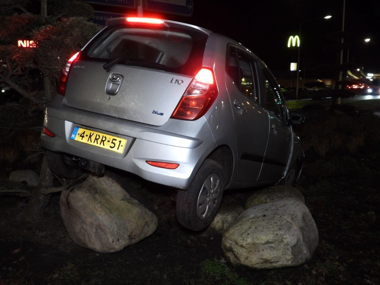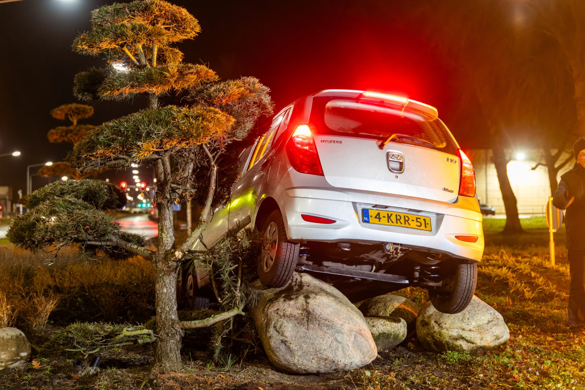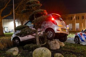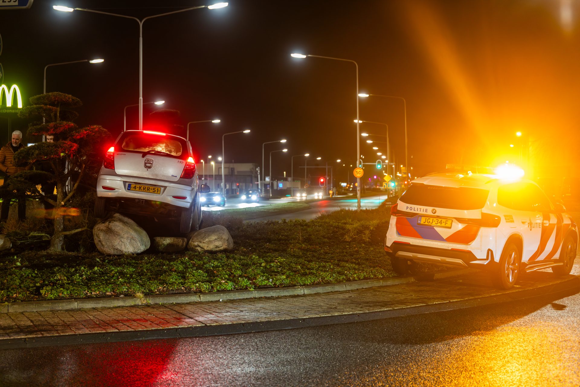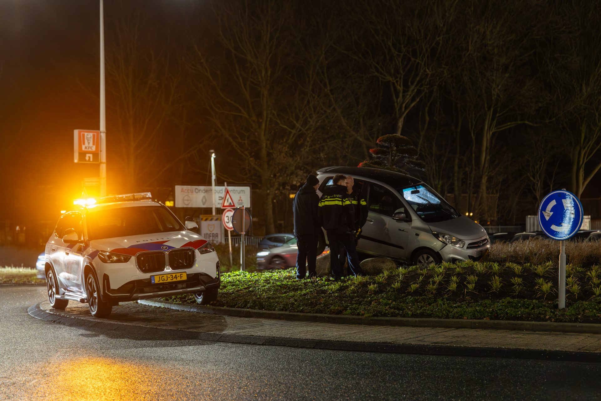 DRACHTEN – Een automobiliste is maandagavond van de weg geraakt en bovenop een rotonde tot stilstand gekomen.