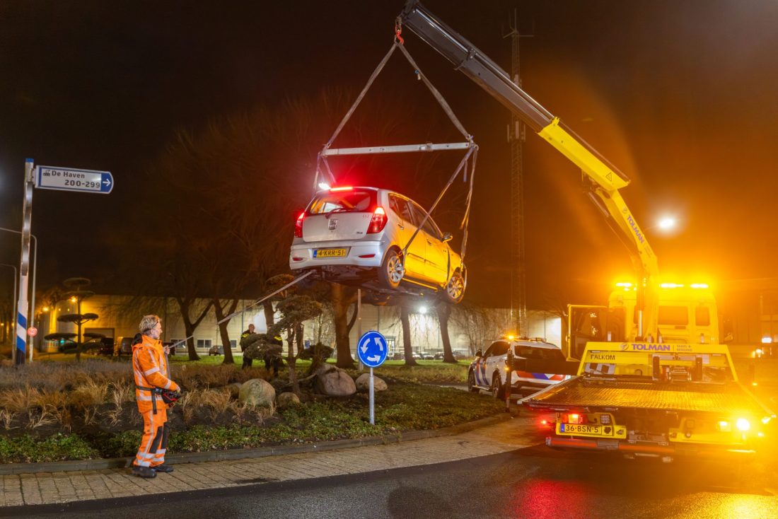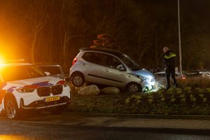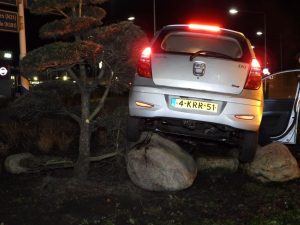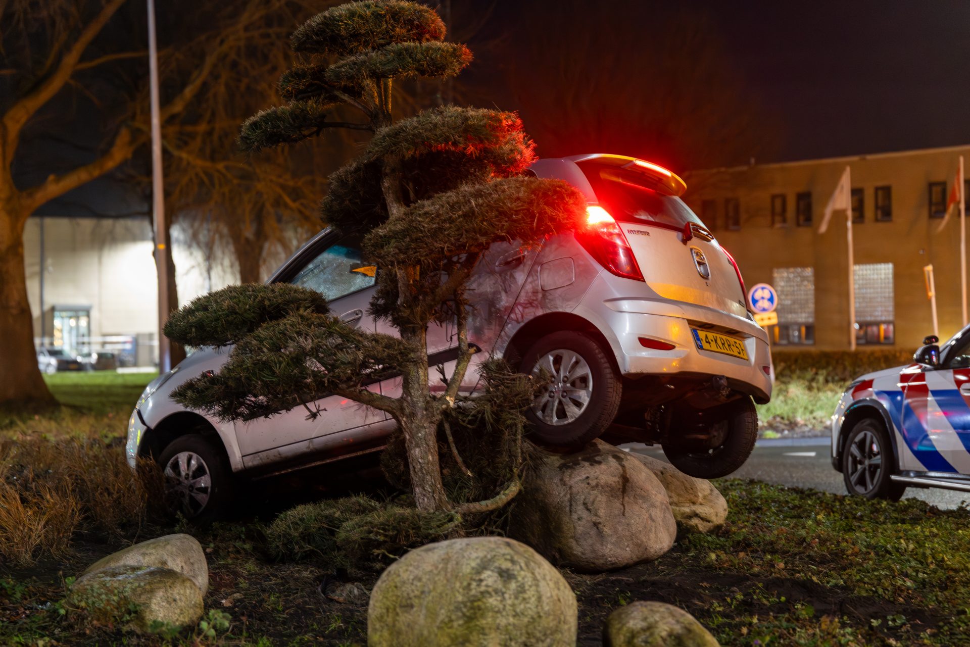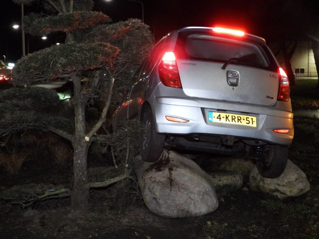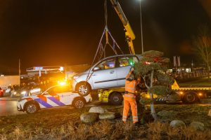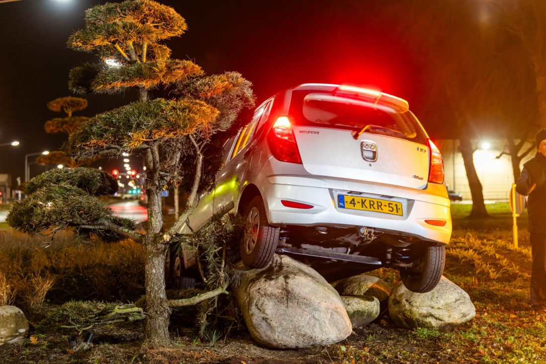 DRACHTEN – Een automobiliste is maandagavond van de weg geraakt en bovenop een rotonde tot stilstand gekomen.