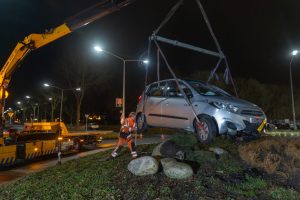 Het ongeval gebeurde omstreeks 21:15 uur. Door een onbekende oorzaak is de auto rechtdoor over de rotonde gereden maar daarbij tot stilstand gekomen op een paar keien. De politie en ambulance kwamen met spoed ter plaatse voor de hulpverlening. De vrouw is door ambulancepersoneel behandeld en overgebracht naar het ziekenhuis.