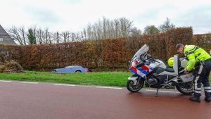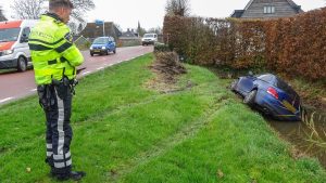 De hulpdiensten, waaronder de politie werden omstreeks 13:20 uur opgeroepen voor het ongeval. De bestuurder verloor door het natte wegdek de controle over het stuur, waarna het voertuig van de weg gleed en in de sloot belandde. Ondanks de materiële schade raakte niemand gewond.