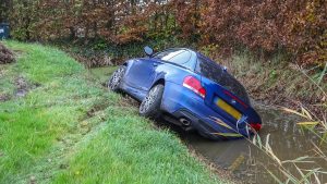 HANTUM – Aan de Smidstrjitte is zaterdagmiddag een voertuig in de sloot terechtgekomen.