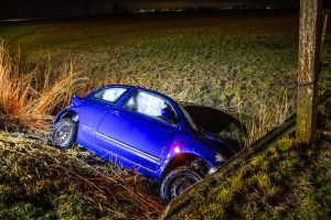 LEONS – Een automobilist is woensdagavond met zijn voertuig in een sloot beland aan de Leons.