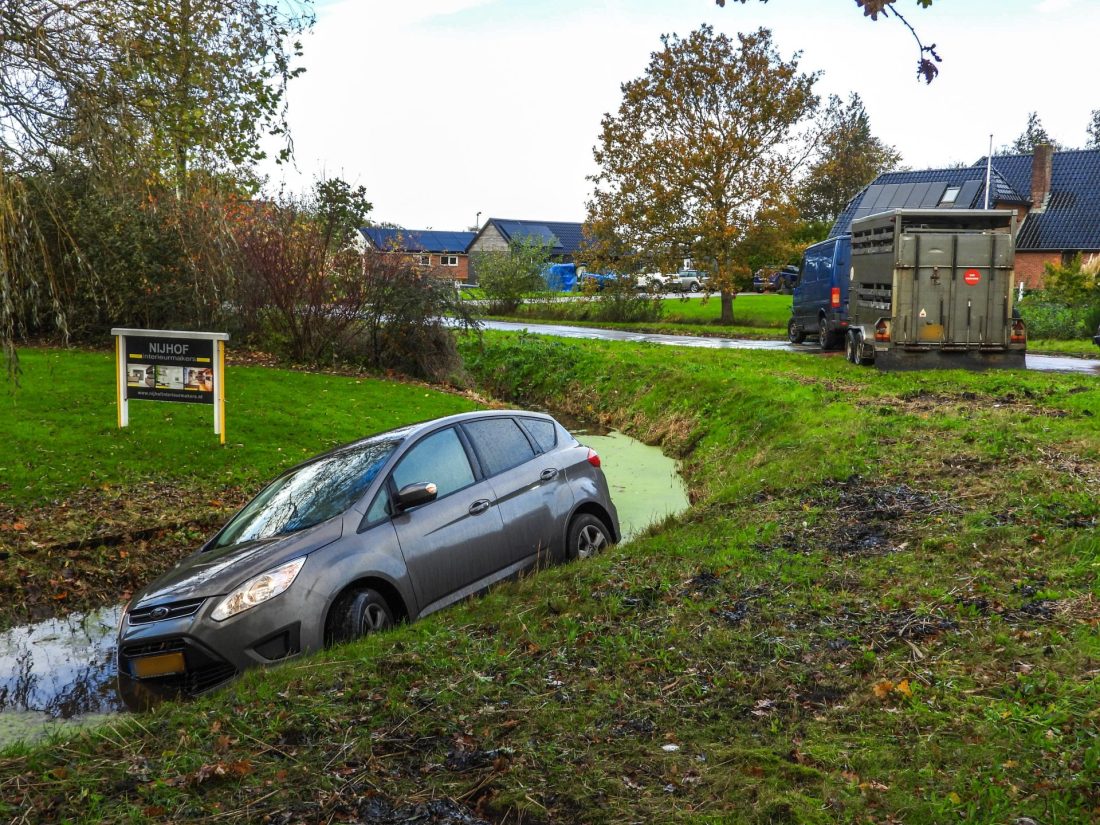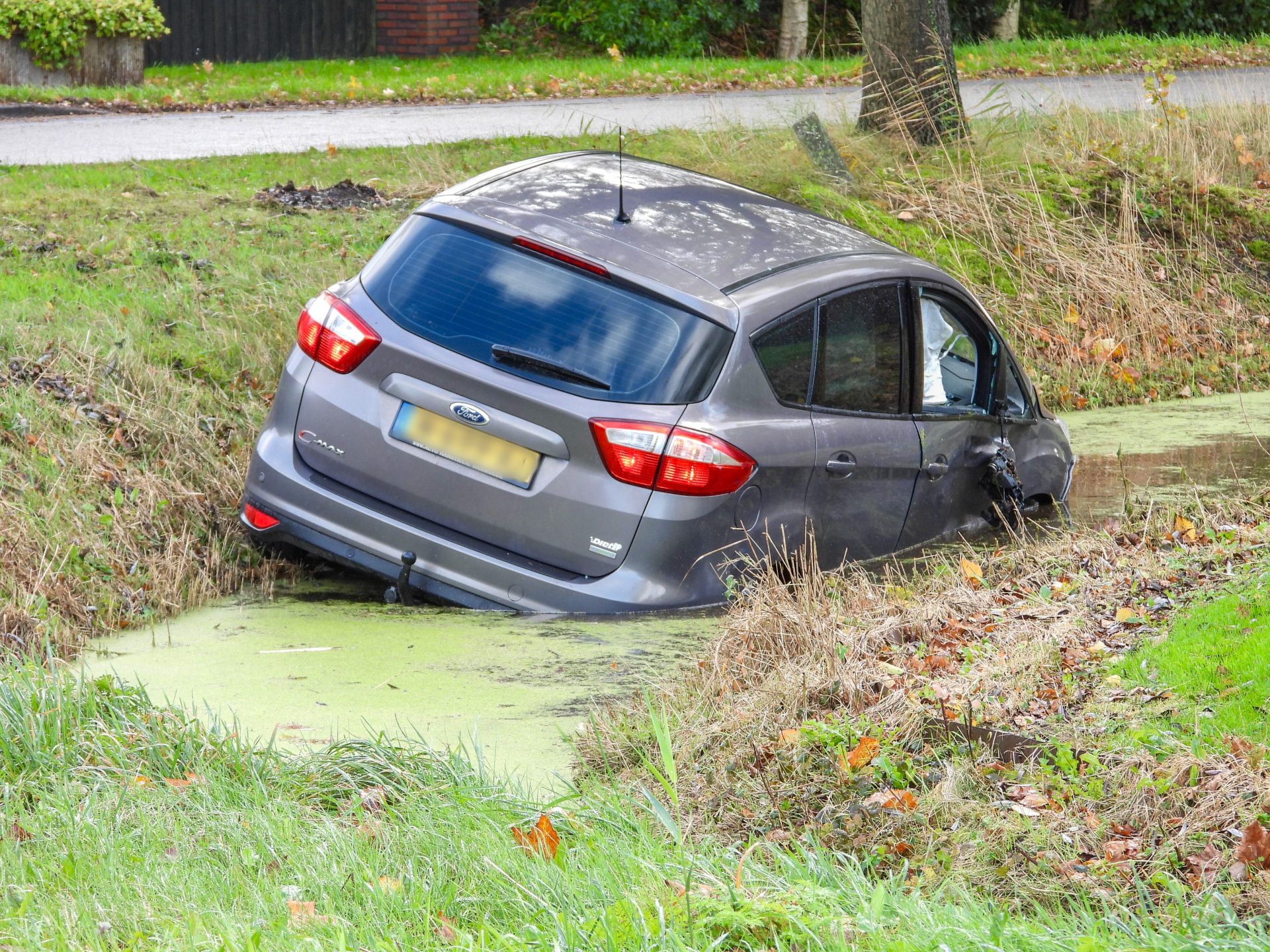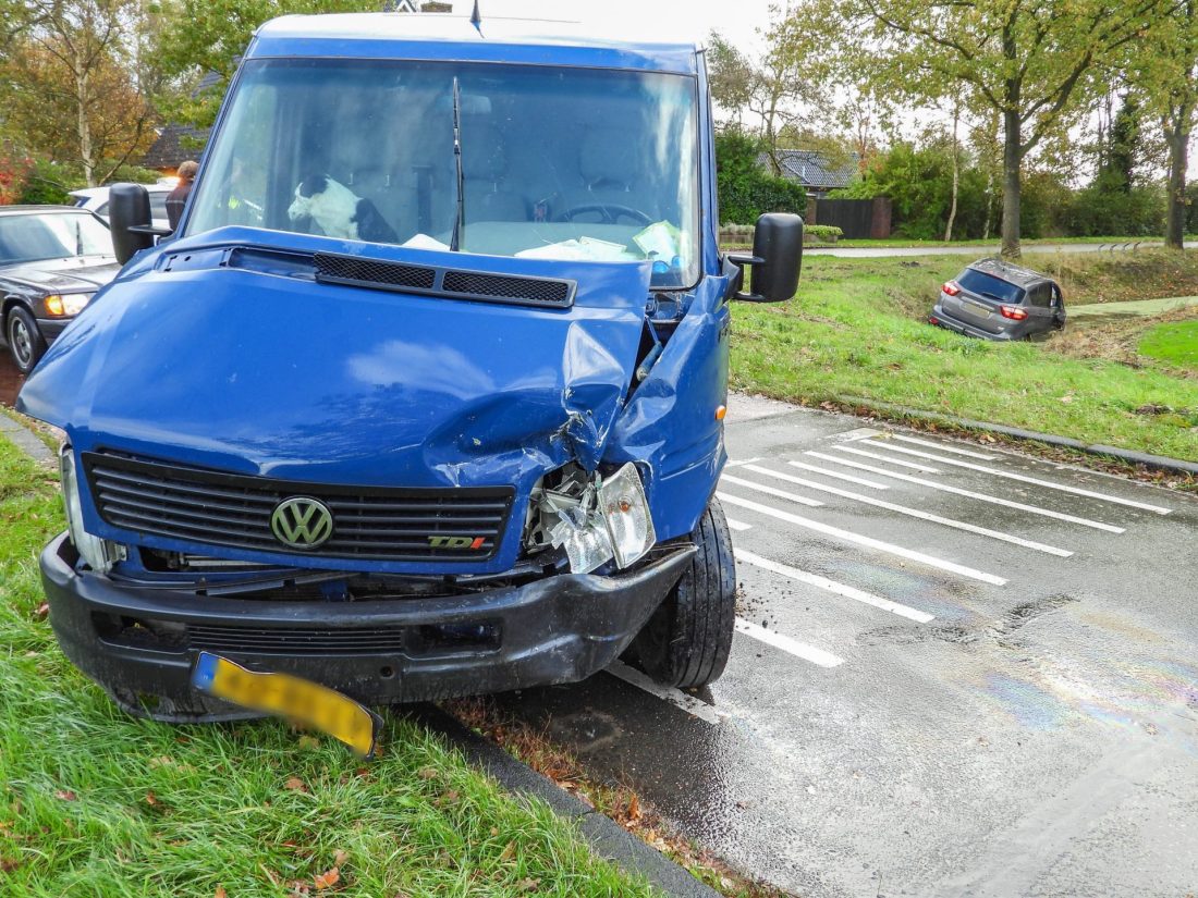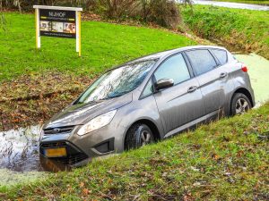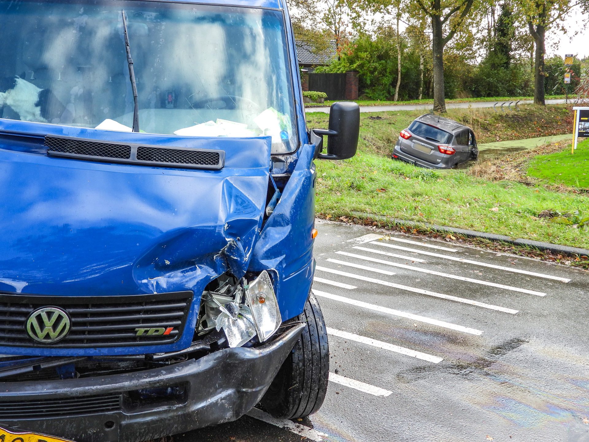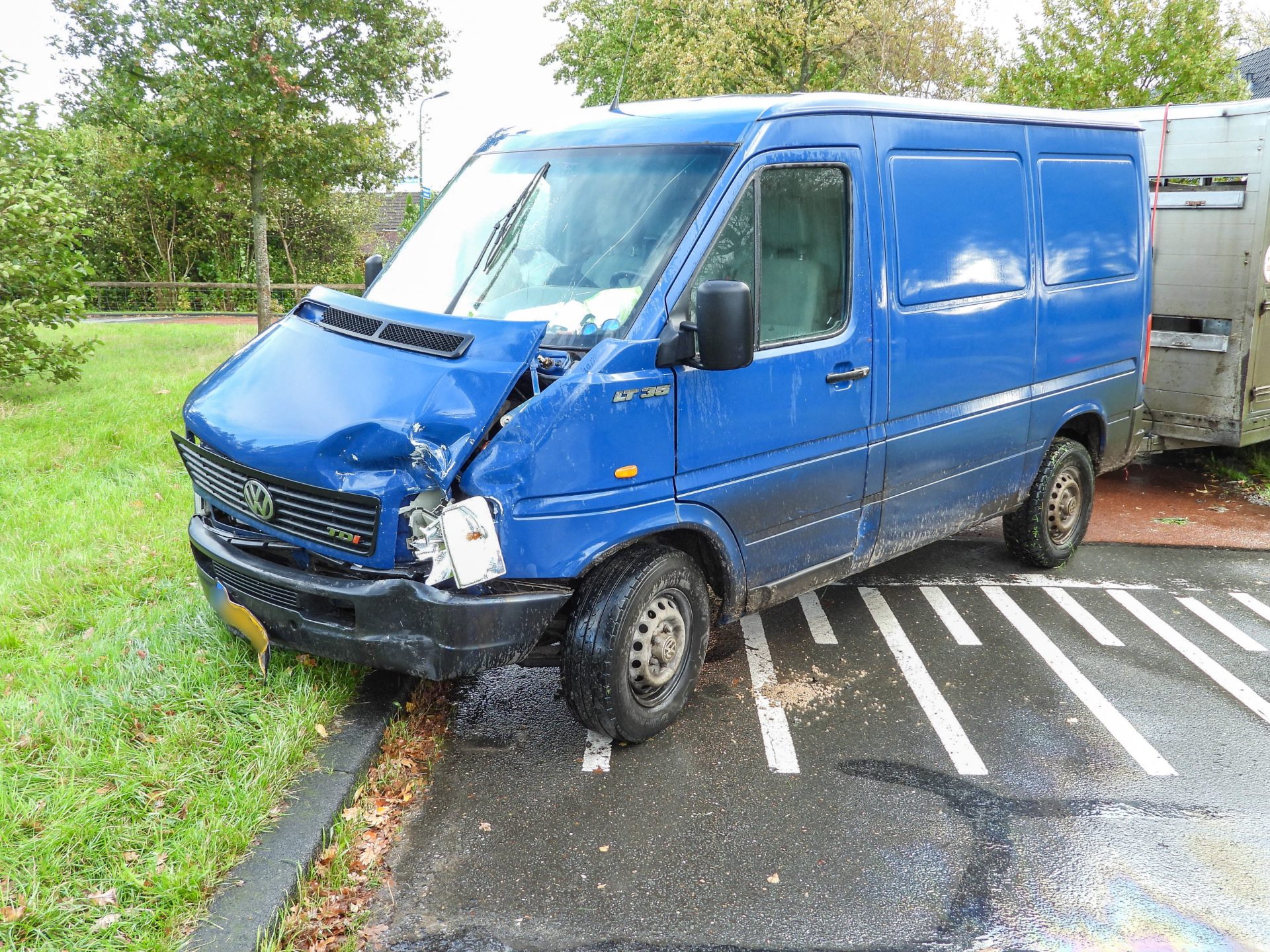 URETERP – Bij een botsing tussen een personenauto en een bestelbus met aanhanger is de personenauto te water geraakt.