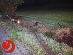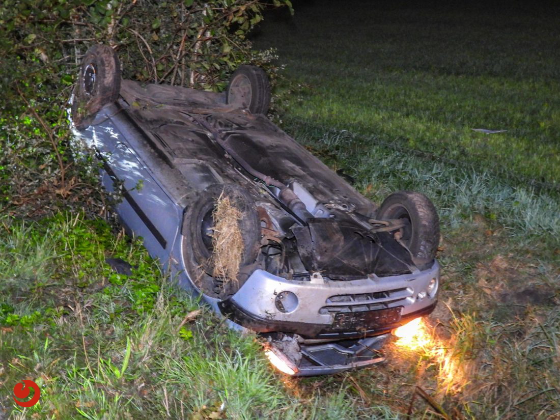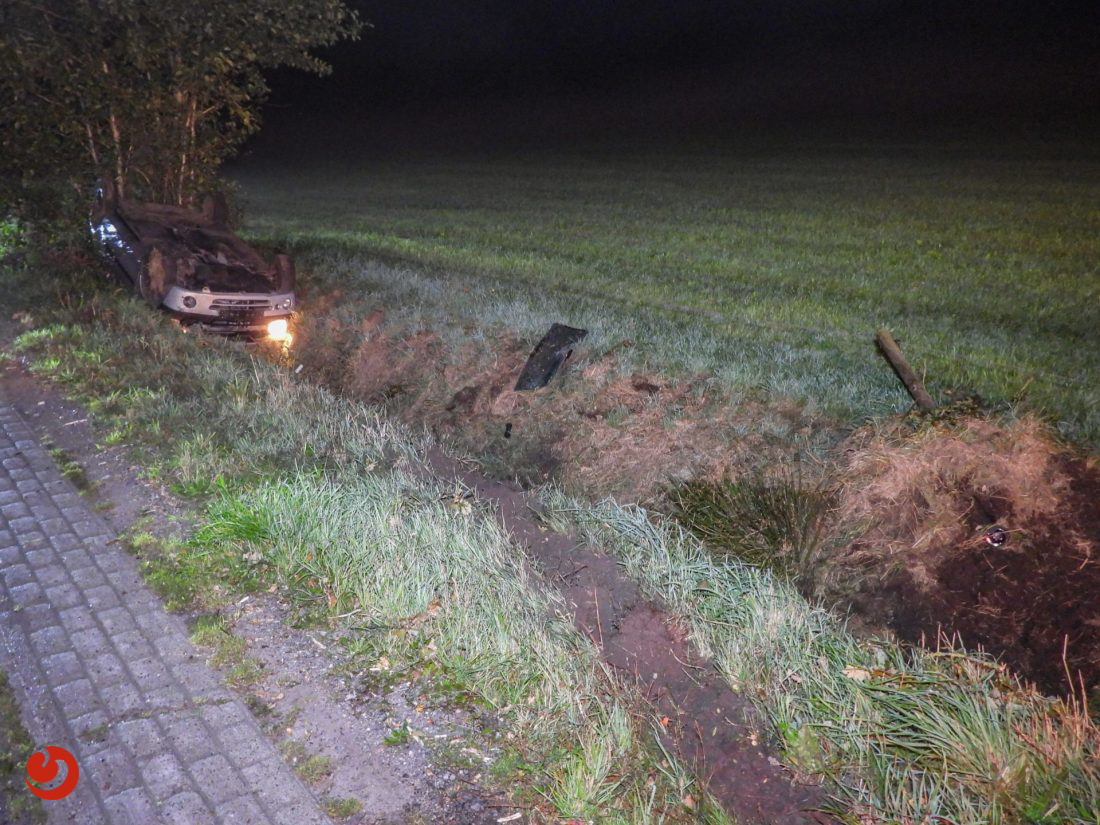 SIEGERSWOUDE – Een personenauto is zondagavond op de kop in een greppel beland bij een eenzijdig ongeval aan de Bremerwei.