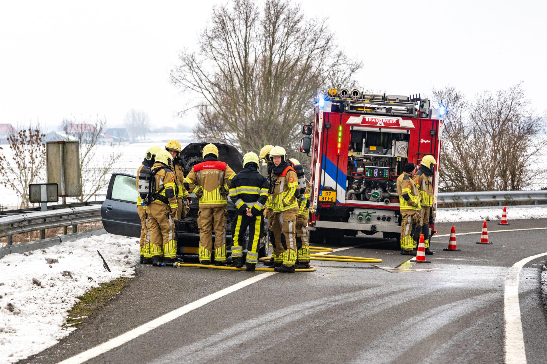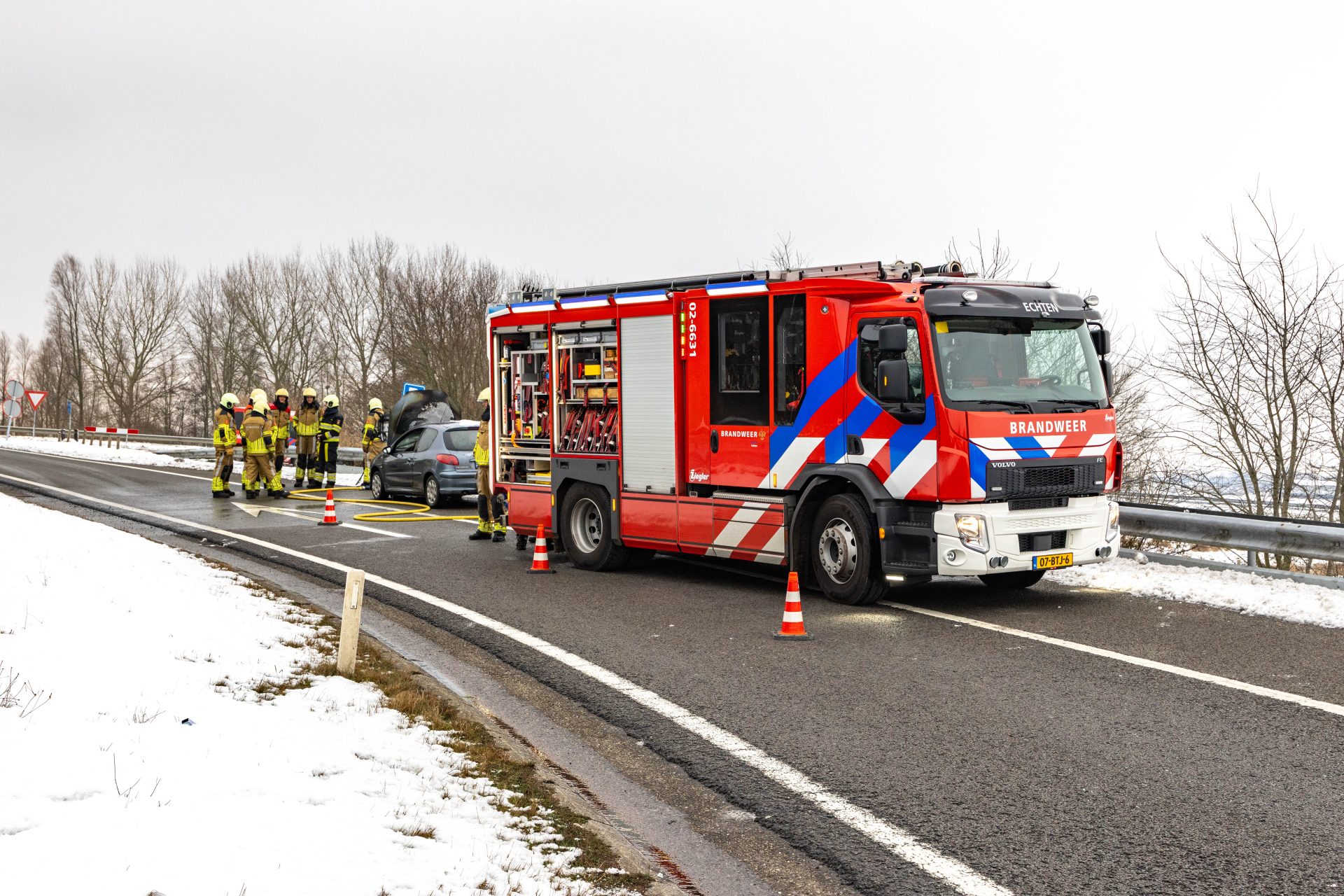De brandweer van Echten was snel ter plaatse maar kon niet voorkomen dat de auto flink beschadigd raakte. Ze hebben de brand geblust. Wat de oorzaak van de brand is, is nog onbekend. De auto is afgesleept. Tijdens de inzet van de hulpdiensten was de afrit dicht voor verkeer.