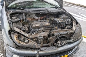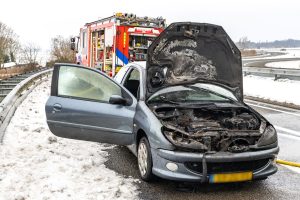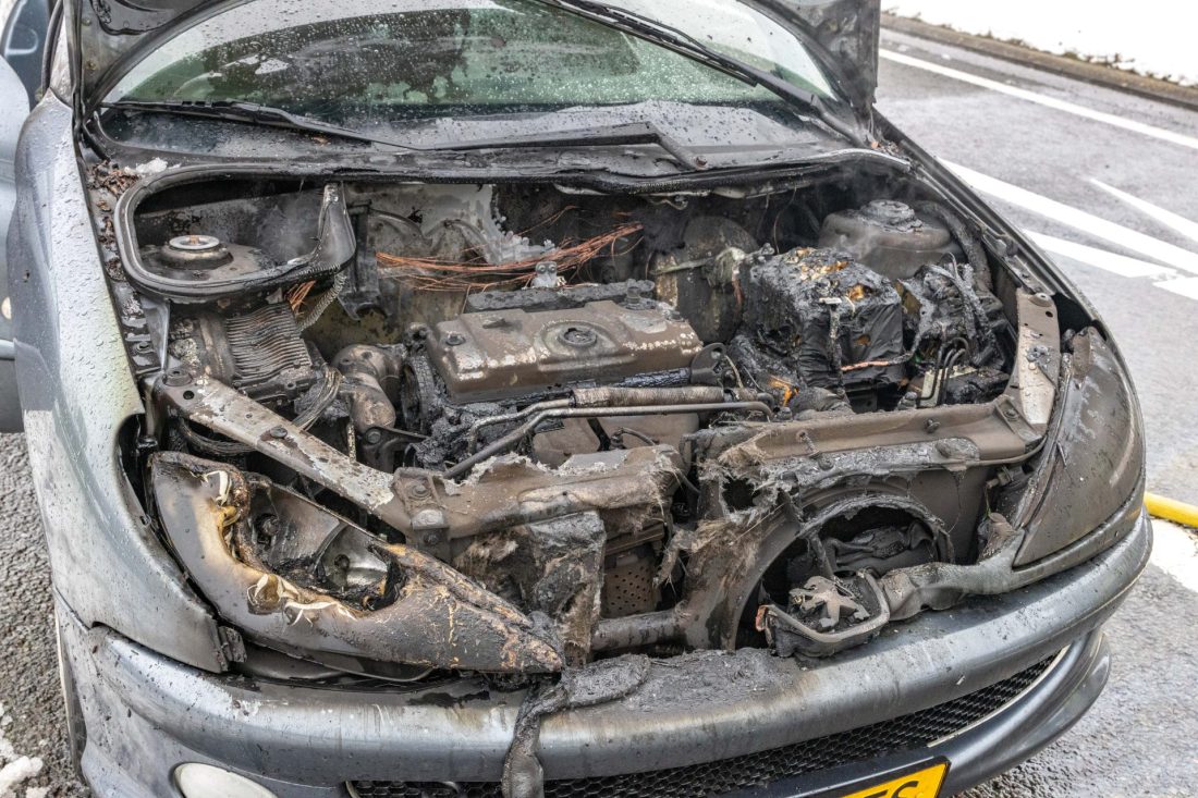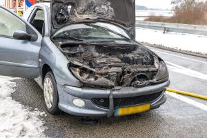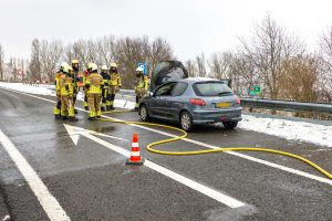 OOSTERZEE – Een personenauto is zondagmiddag flink beschadigd geraakt door een korte felle brand op de afrit van de A6.