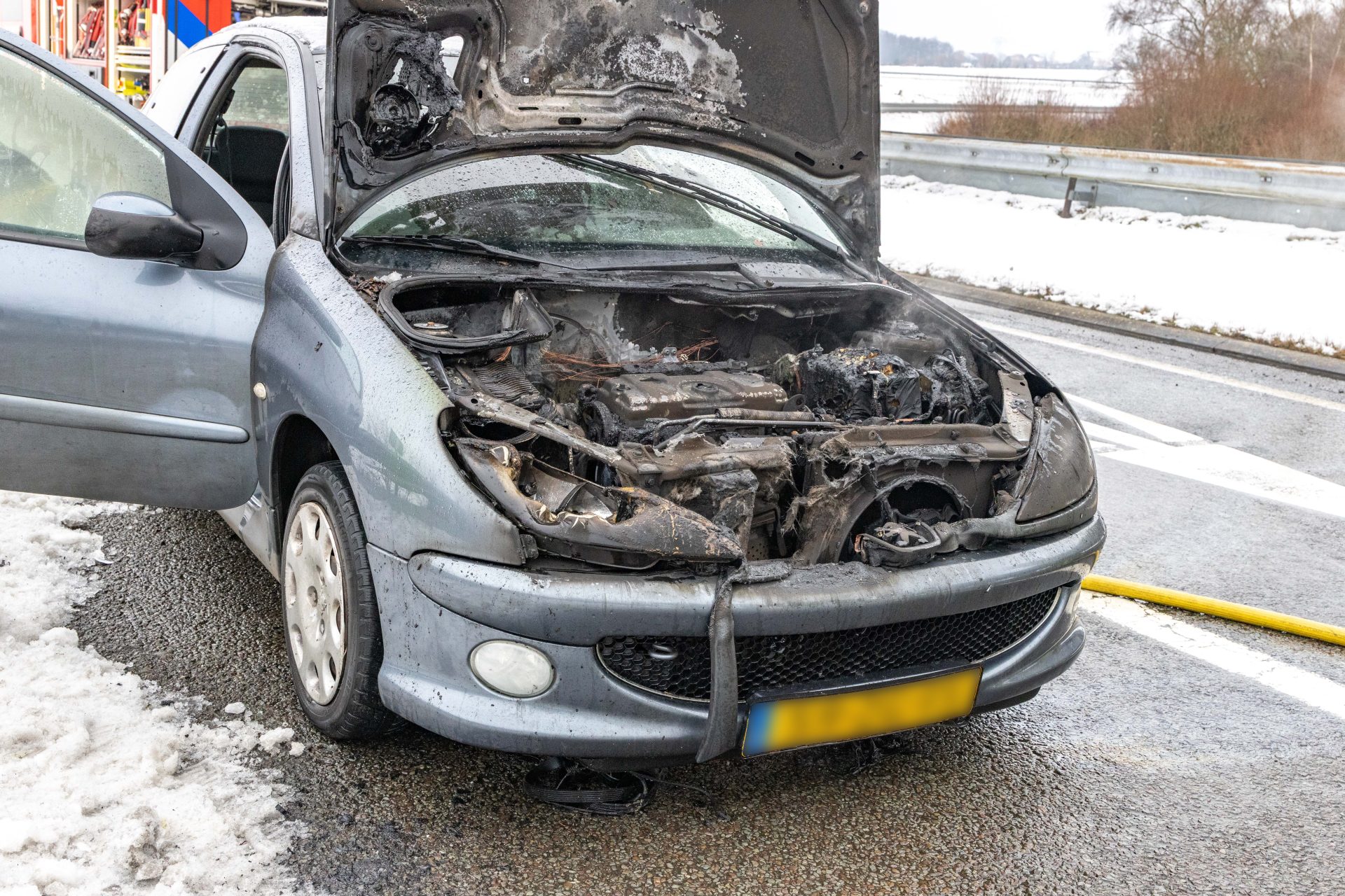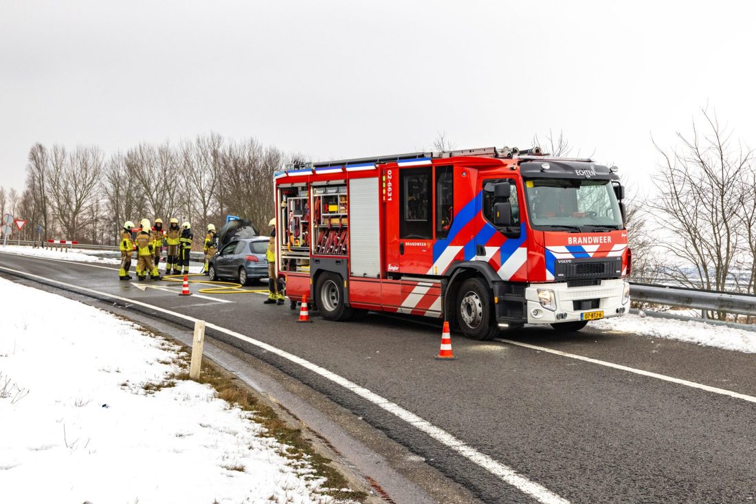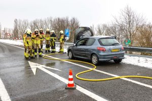 Rond 14:50 uur nam de automobilist de afrit uit de richting van Lemmer. Op de afrit ontdekte de bestuurder dat het motorcompartiment van de auto in brand stond en is direct gestopt op de vluchtstrook.