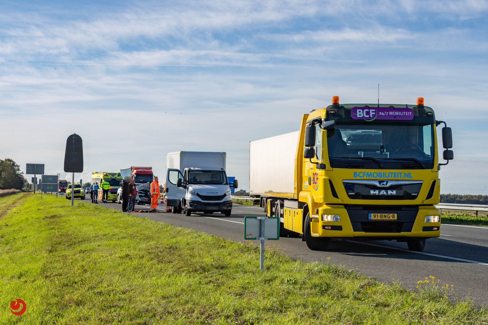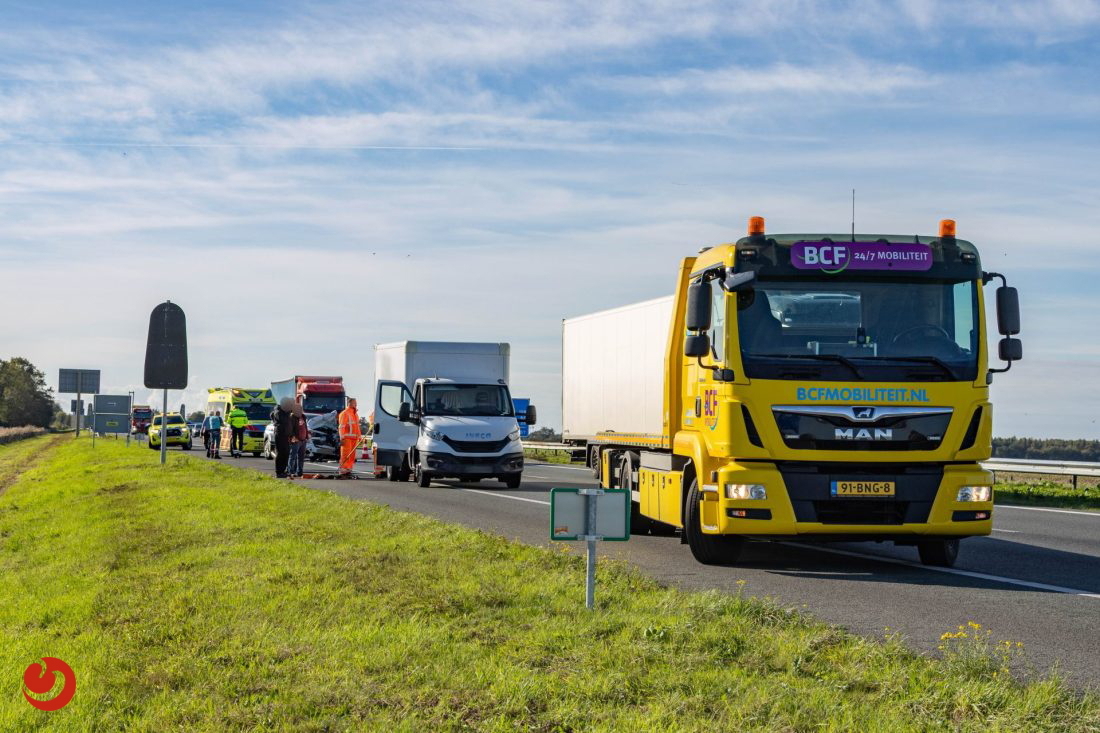 Een automobilist(e) reed omstreeks half twaalf over de A6 vanuit Sint Nicolaasga richting Joure toen deze door onbekende oorzaak achterop een bestelbus botste. Politie en ambulance zijn met spoed ter plaatse gekomen. Tenminste een persoon is door ambulancepersoneel behandeld en overgebracht naar het ziekenhuis.