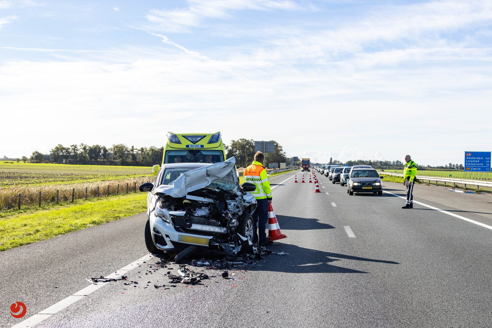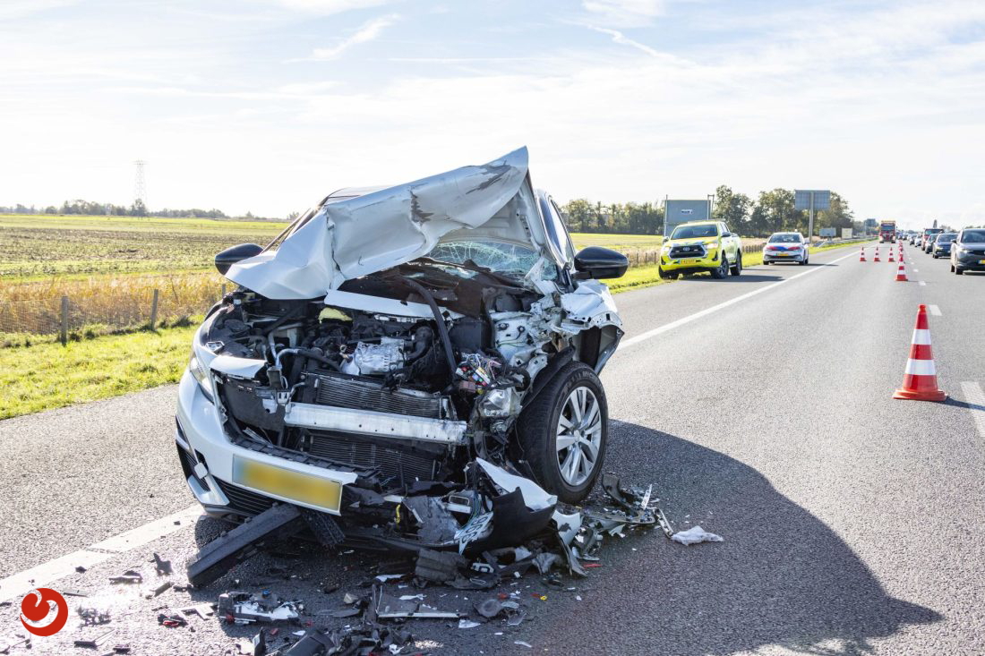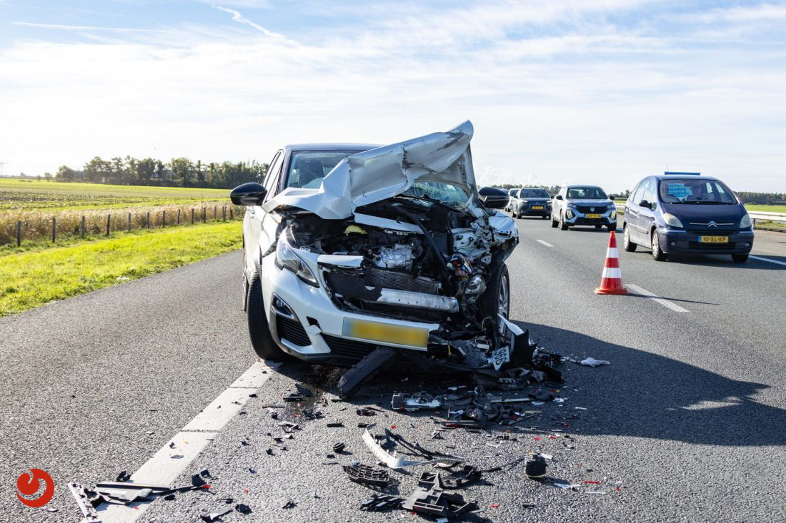 Door het ongeval ontstond een flinke file richting Joure. Een bergingsbedrijf heeft de voertuigen geborgen.