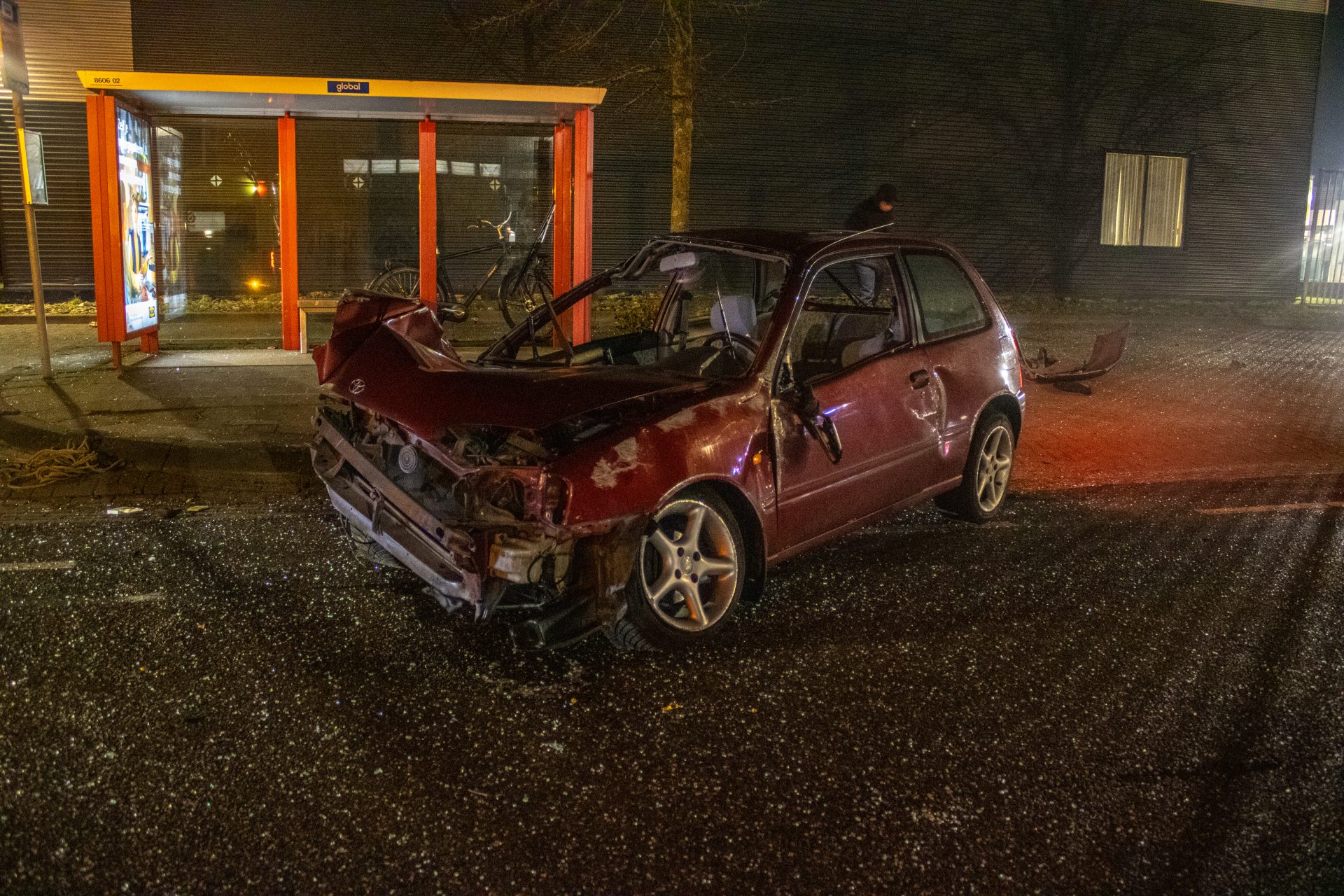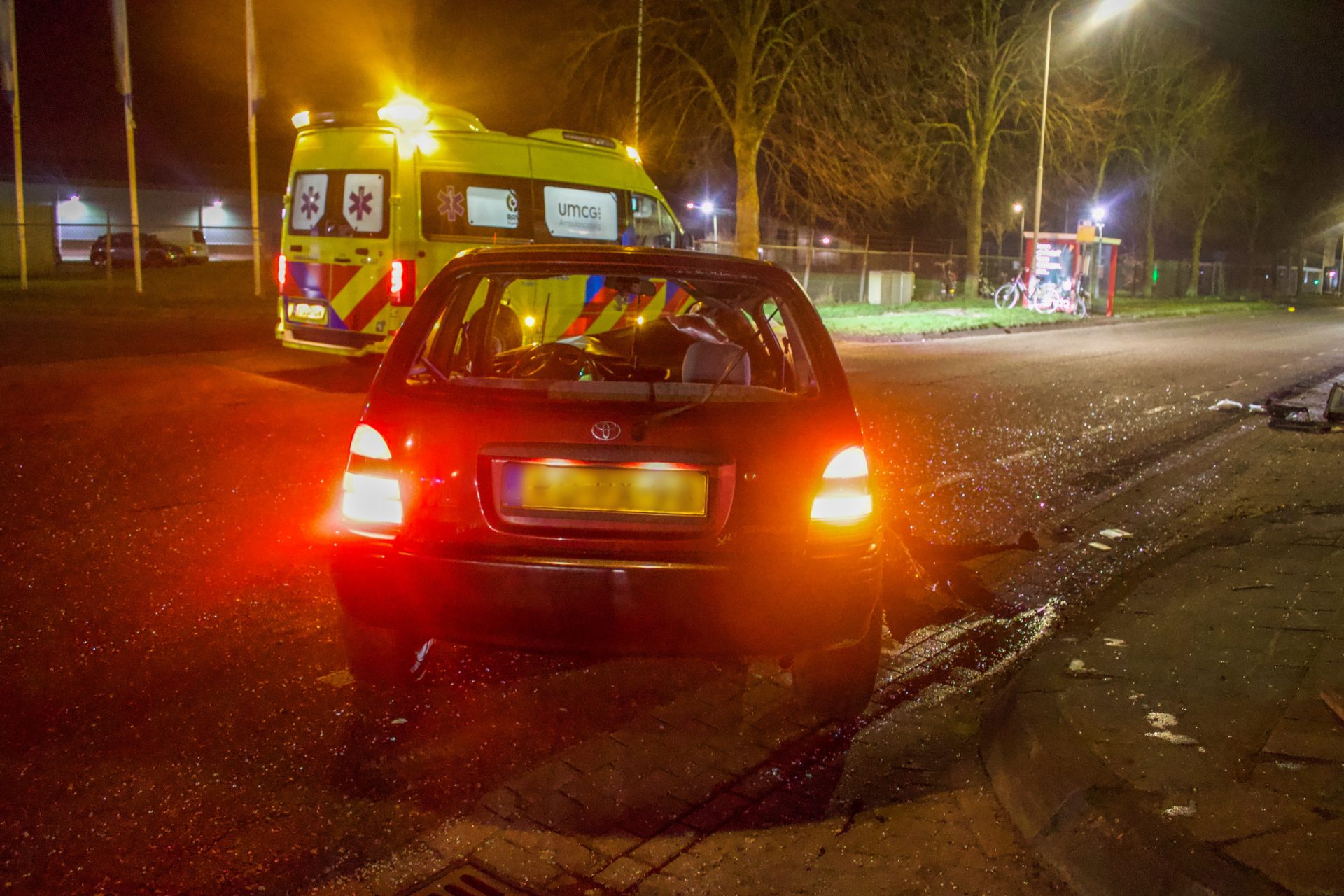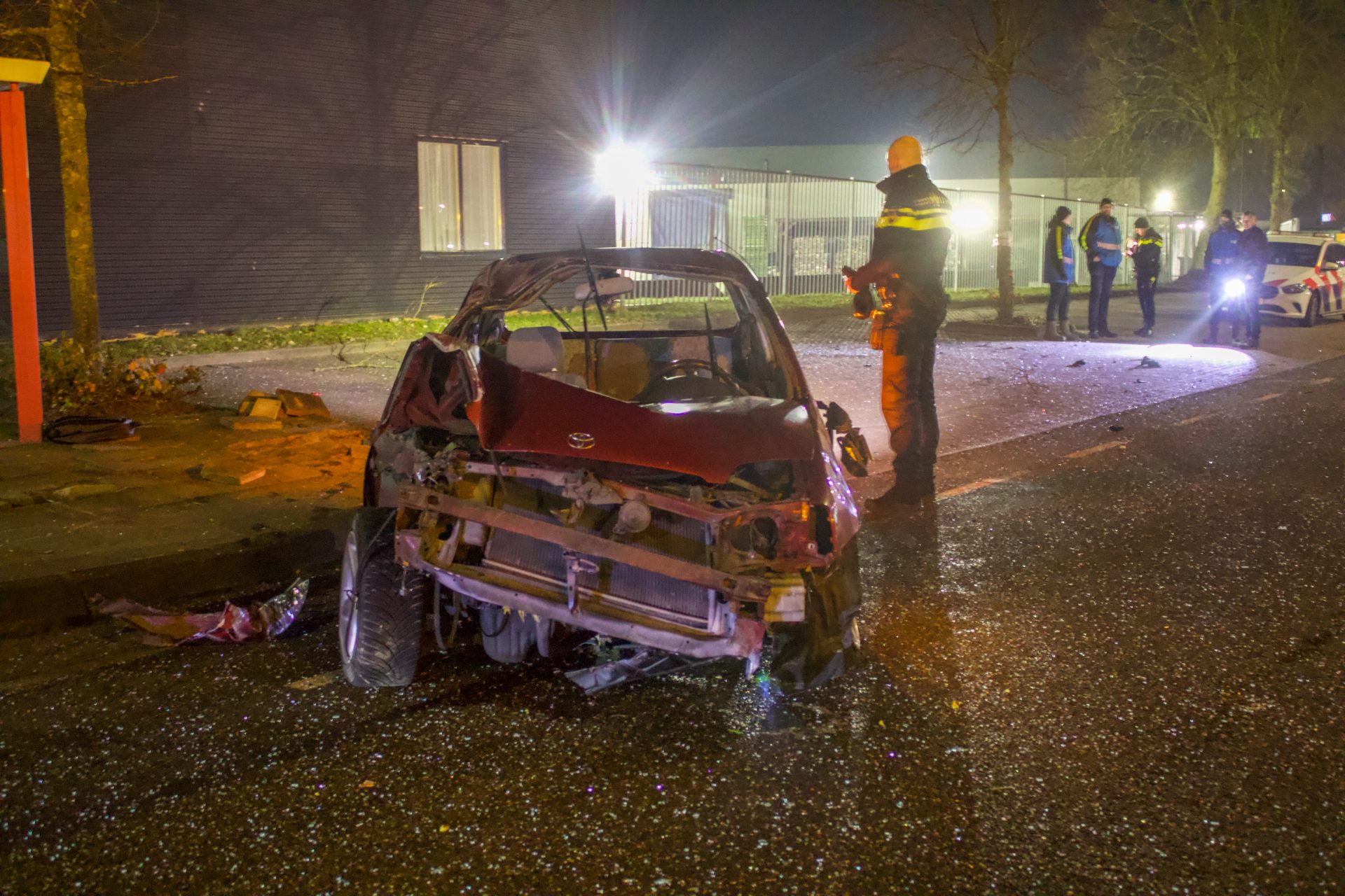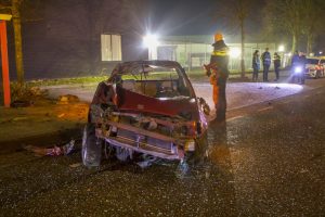De weg was door het ongeval enige tijd gestremd. De auto is door een berger afgesleept.