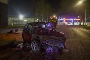 De man reed omstreeks tien over elf over de Einsteinstraat en verloor door onbekende oorzaak de macht over het stuur. De auto botste tegen een boom, sloeg over de kop en raakte een geparkeerde vrachtwagen. Politie en ambulance kwamen met spoed ter plaatse om hulp te verlenen. De man is in een ambulance behandeld aan onder andere verwondingen aan zijn hand maar vervoer naar het ziekenhuis bleek niet nodig te zijn.