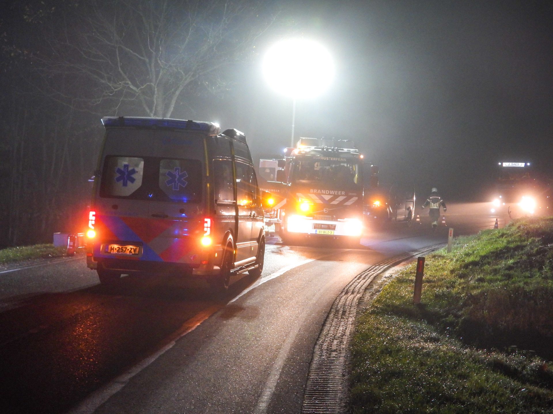 Een vrouw reed omstreeks tien over zes met haar auto over de N358 tot zij vermoedelijk door dichte mist een bocht miste. Ze belandde naast de weg en kwam tegen een boom tot stilstand. De brandweer, politie en ambulance kwamen met spoed ter plaatse om hulp te verlenen. De vrouw is in de ambulance behandeld aan haar verwondingen en overgebracht naar het ziekenhuis.