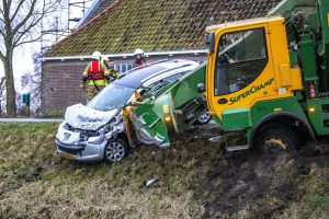Politie, brandweer en meerdere ambulances zijn met spoed ter plaatse gekomen. De bestuurster van de auto is behandeld in een ambulance behandeld, vervoer naar het ziekenhuis bleek niet nodig. De bestuurder van de voermengwagen is met de schrik vrij gekomen.