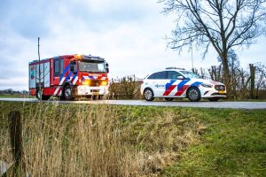 De weg is door het incident afgesloten. De auto zal worden geborgen.