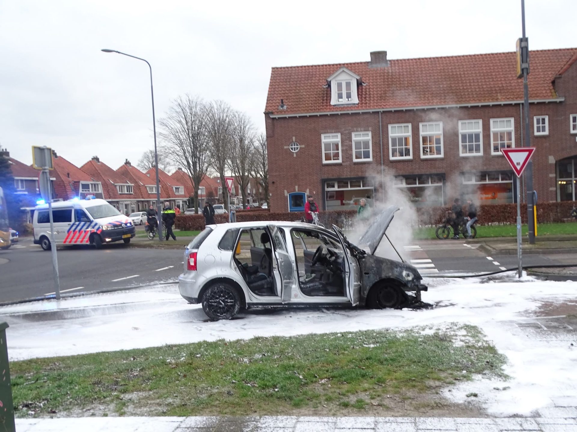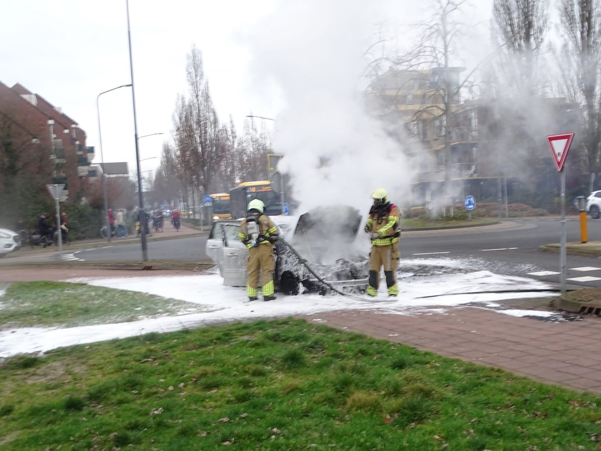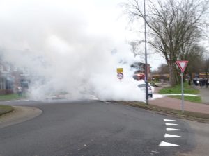 De brandweer ging met spoed ter plaatse en trof een auto aan die al in lichterlaaie stond. Tijdens het blussen kwam er veel rook vrij. De brandweer kon het vuur snel blussen.