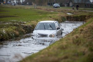 HOMMERTS – Een auto met vier inzittenden is zondagmiddag in een sloot belandt.
