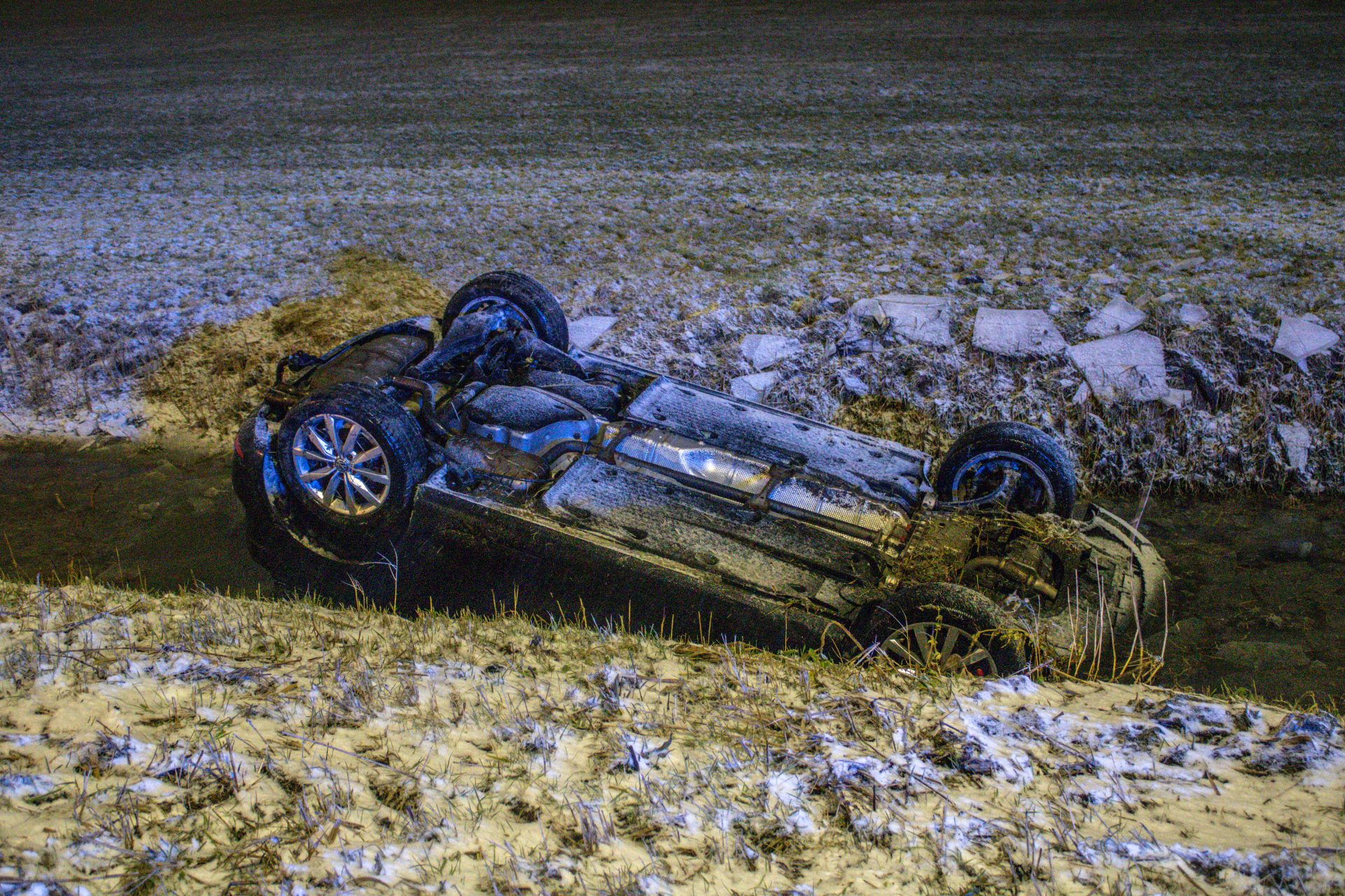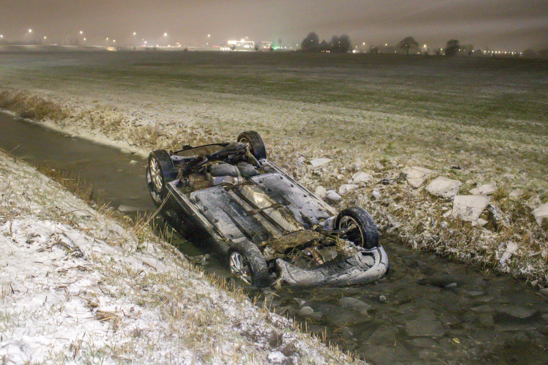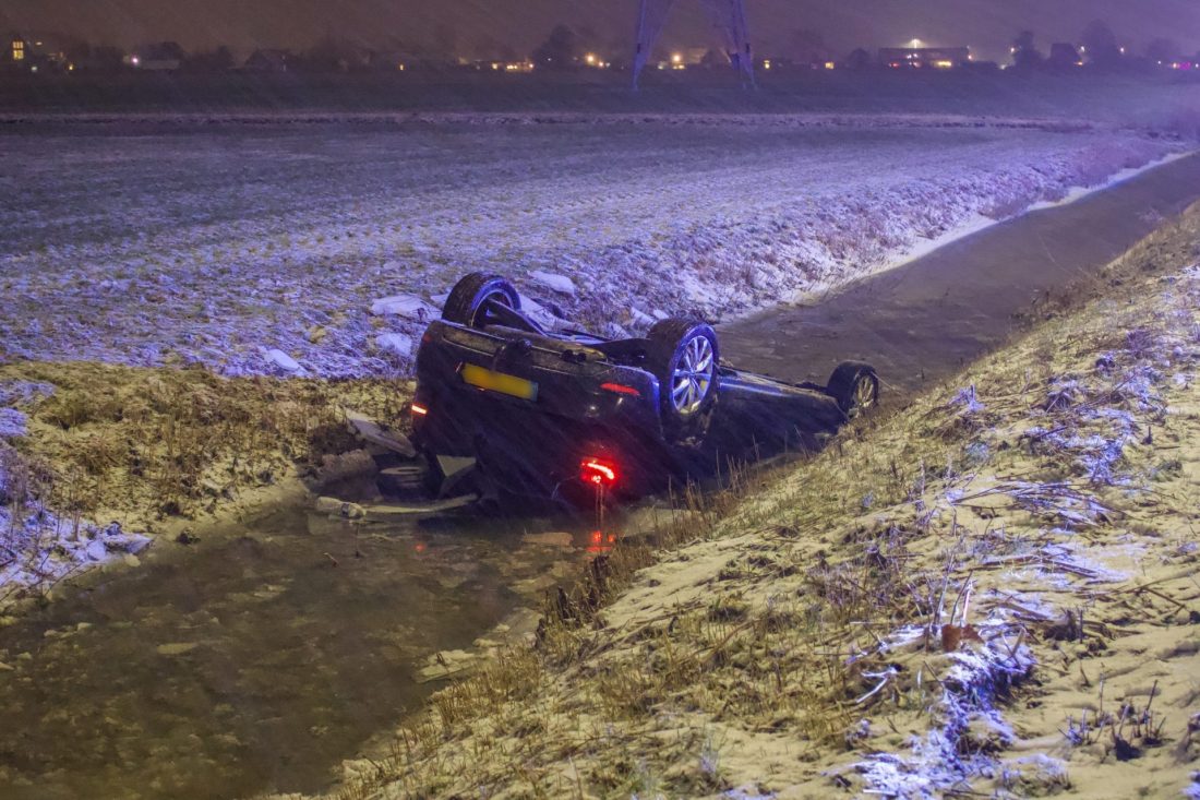 WIRDUM – Langs de N32 is dinsdagavond een auto op de kop in het water terecht gekomen.