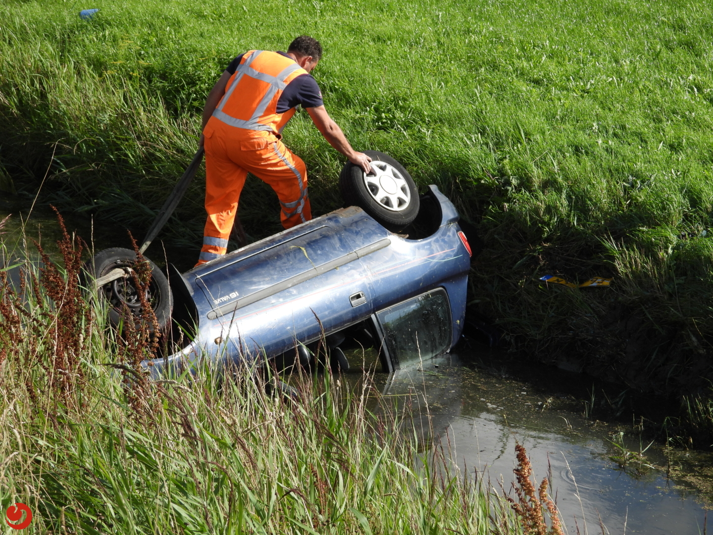 Politie, ambulance en brandweer kwamen rond half zes met spoed ter plaatse om hulp te verlenen. Een auto was langs de Westergoawei, tussen Marsum en Bitgum, op de kop in de sloot beland.
