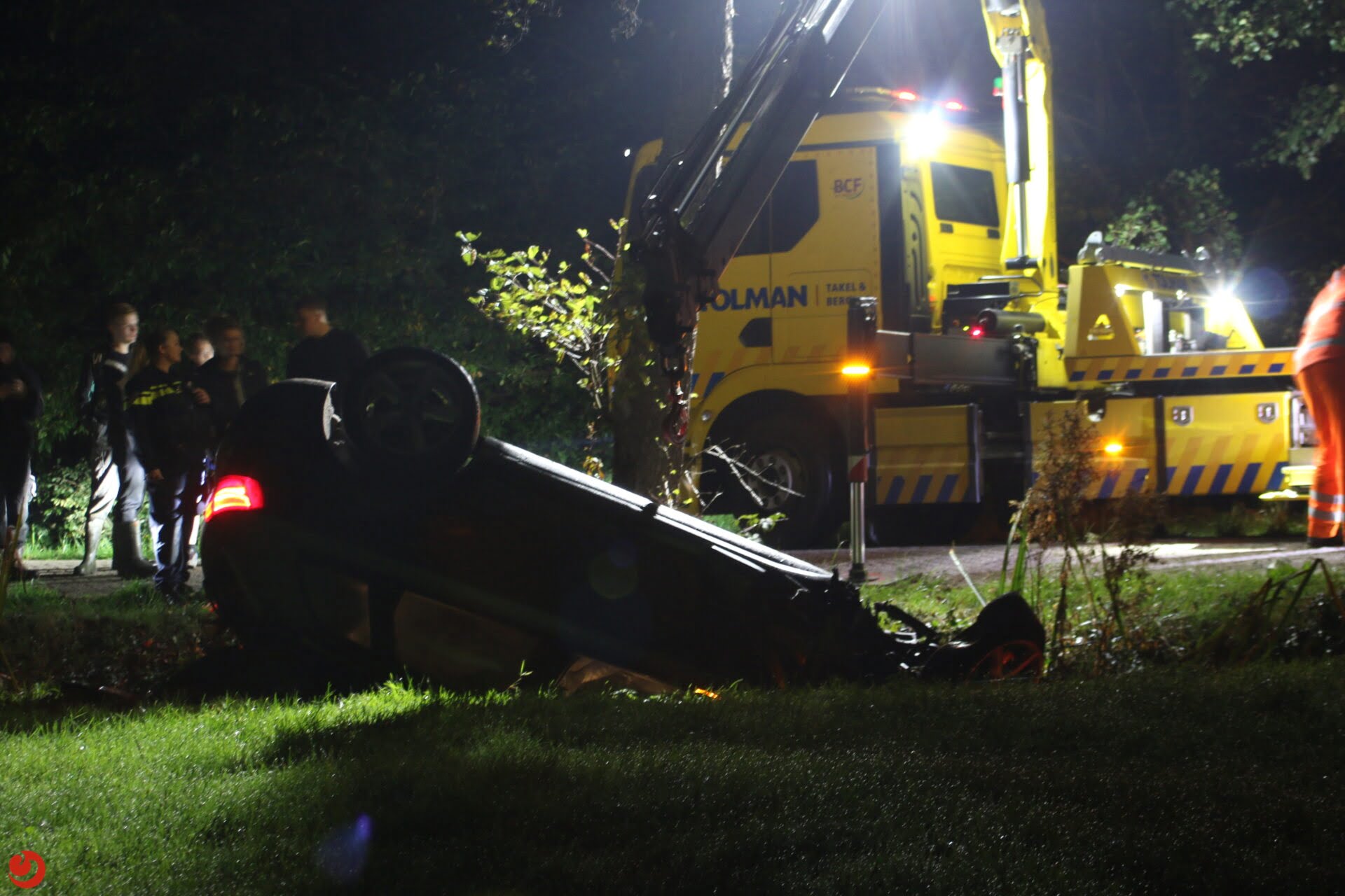 Door onbekende oorzaak raakte de auto even na half tien van de weg. Hij raakte een boom en kwam vervolgens in de naastgelegen greppel tot stilstand.