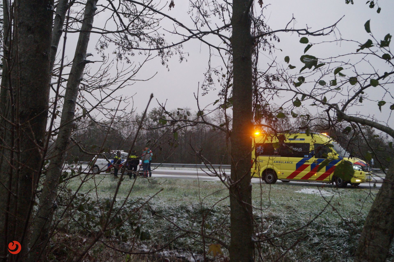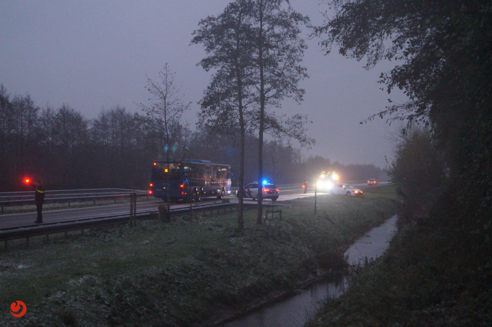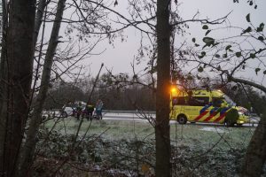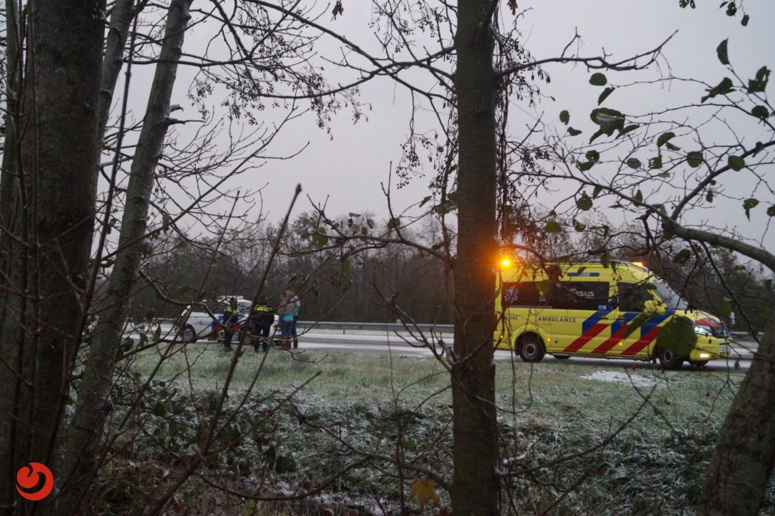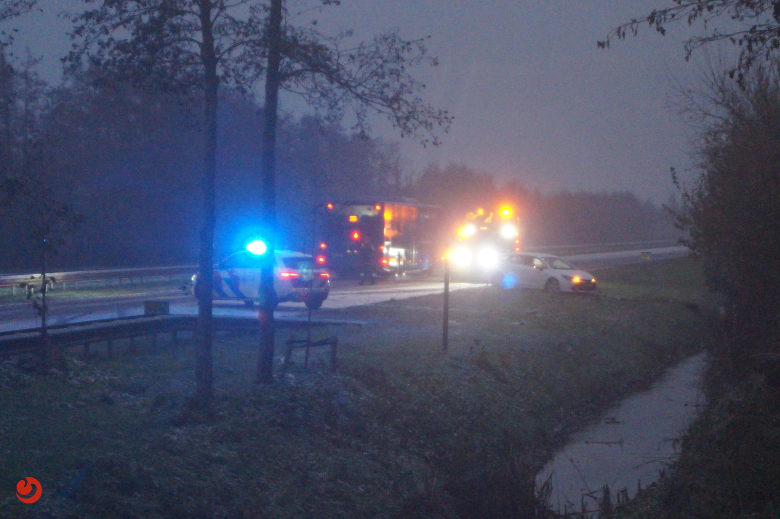 Door de gladheid verloor de automobilist de macht over het stuur en kwam deels in een sloot tot stilstand.De inzittenden van de auto zijn door ambulancepersoneel gecontroleerd.