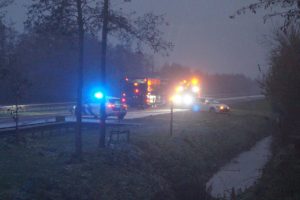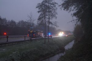 DAMWÂLD – Een auto is door de gladheid zondagmiddag op de Sintrale As (N356) van de weg gegleden.
