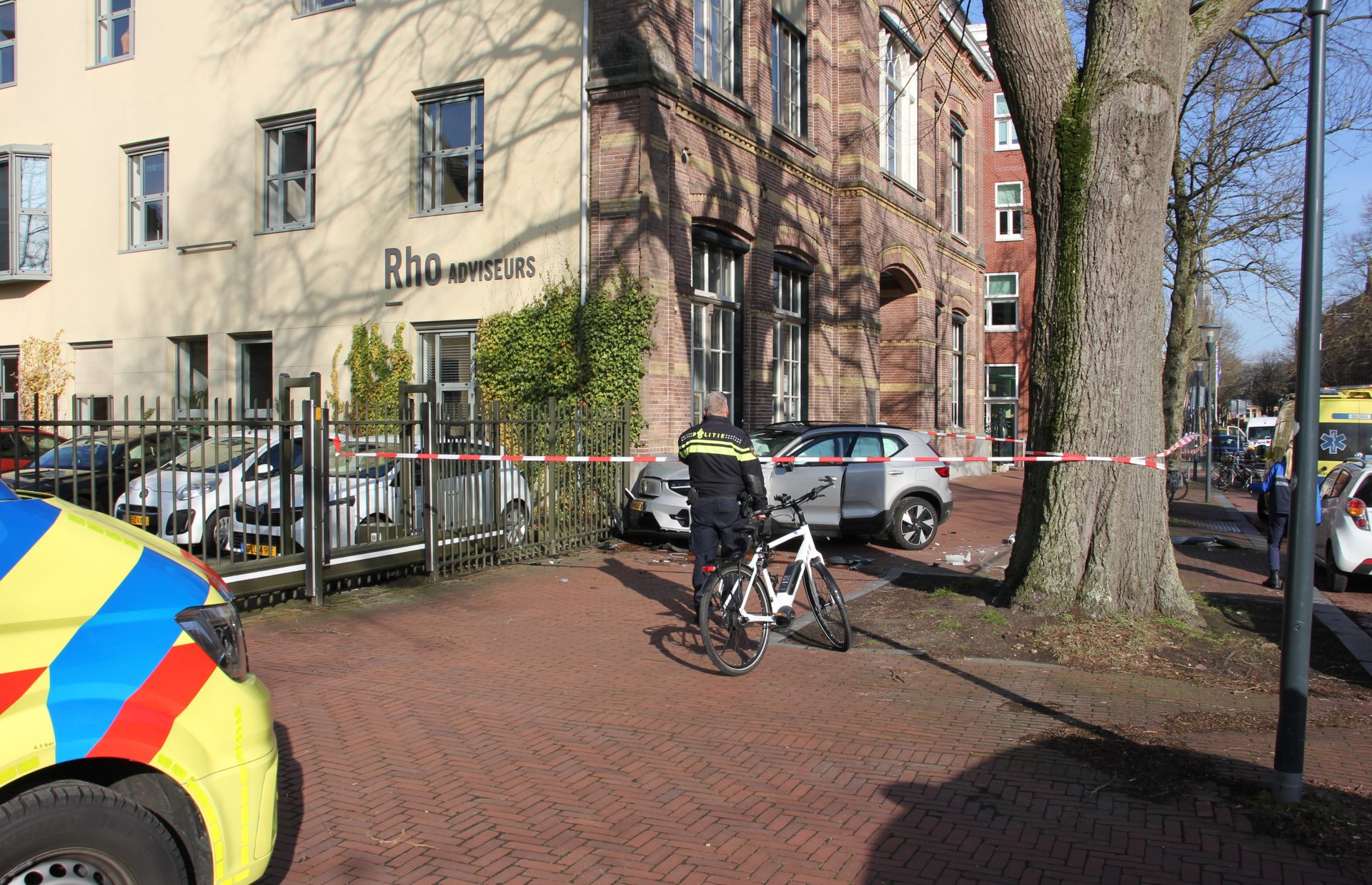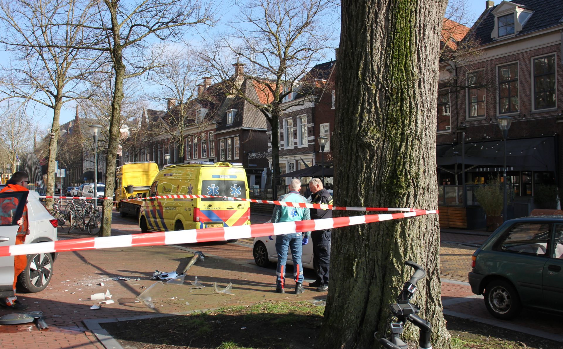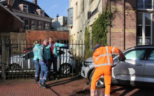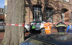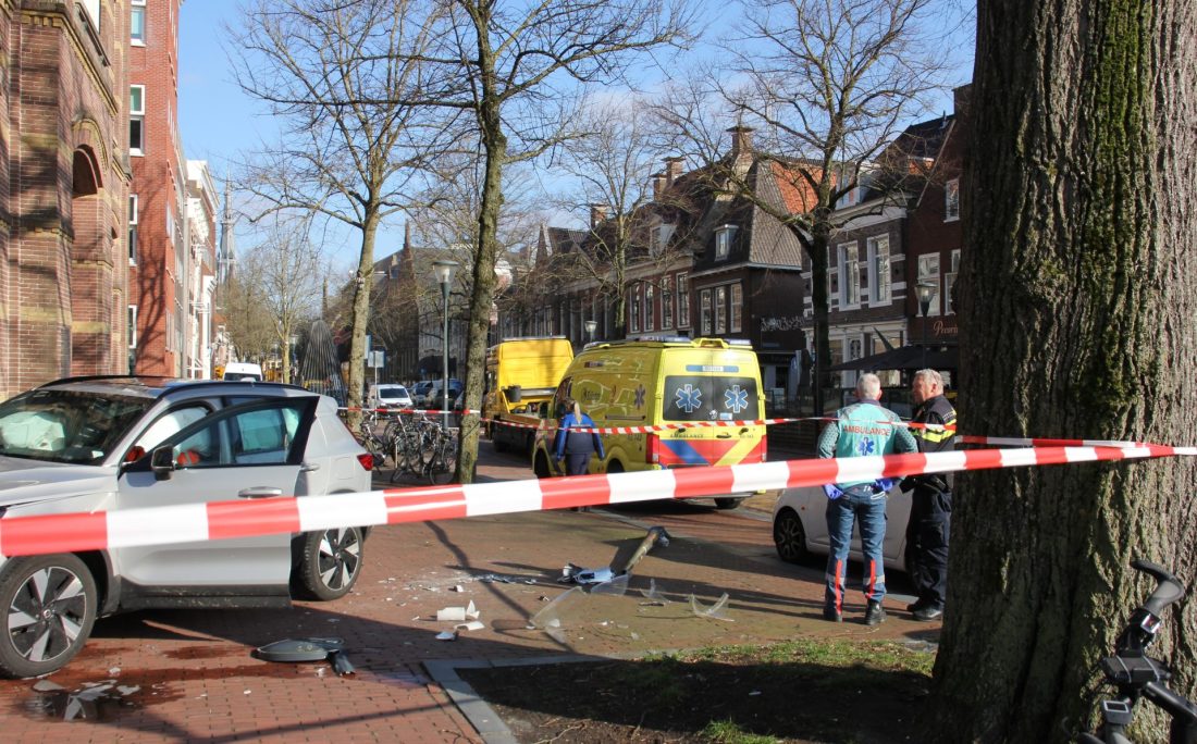 Ook handhavers van de gemeente kwamen ter plaatse om hulp te verlenen. Met linten werd een stuk om de auto afgezet vanwege mogelijk onderzoek en de rommel. De automobilist(e) is binnen door ambulancepersoneel gecontroleerd maar bleek met de schrik te zijn vrijgekomen.