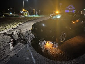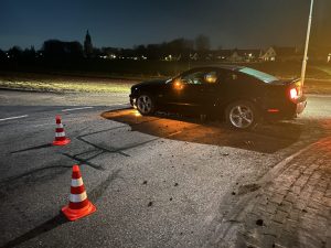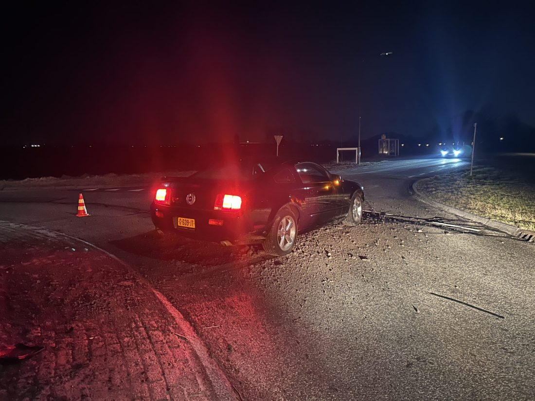 DRONRYP – Een automobilist reed maandagavond omstreeks half negen op de rotonde in de Strjitwei rechtdoor.