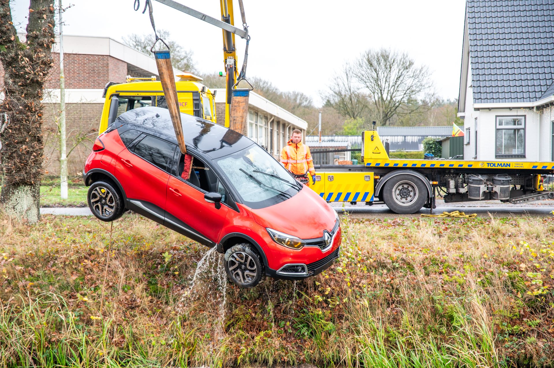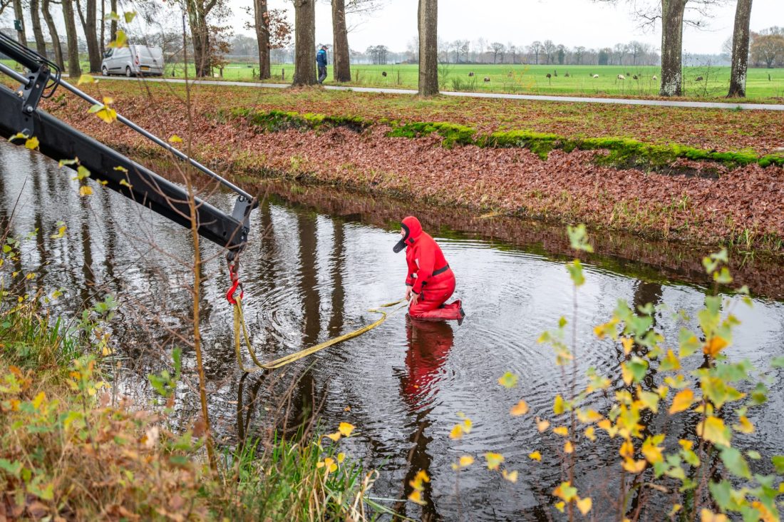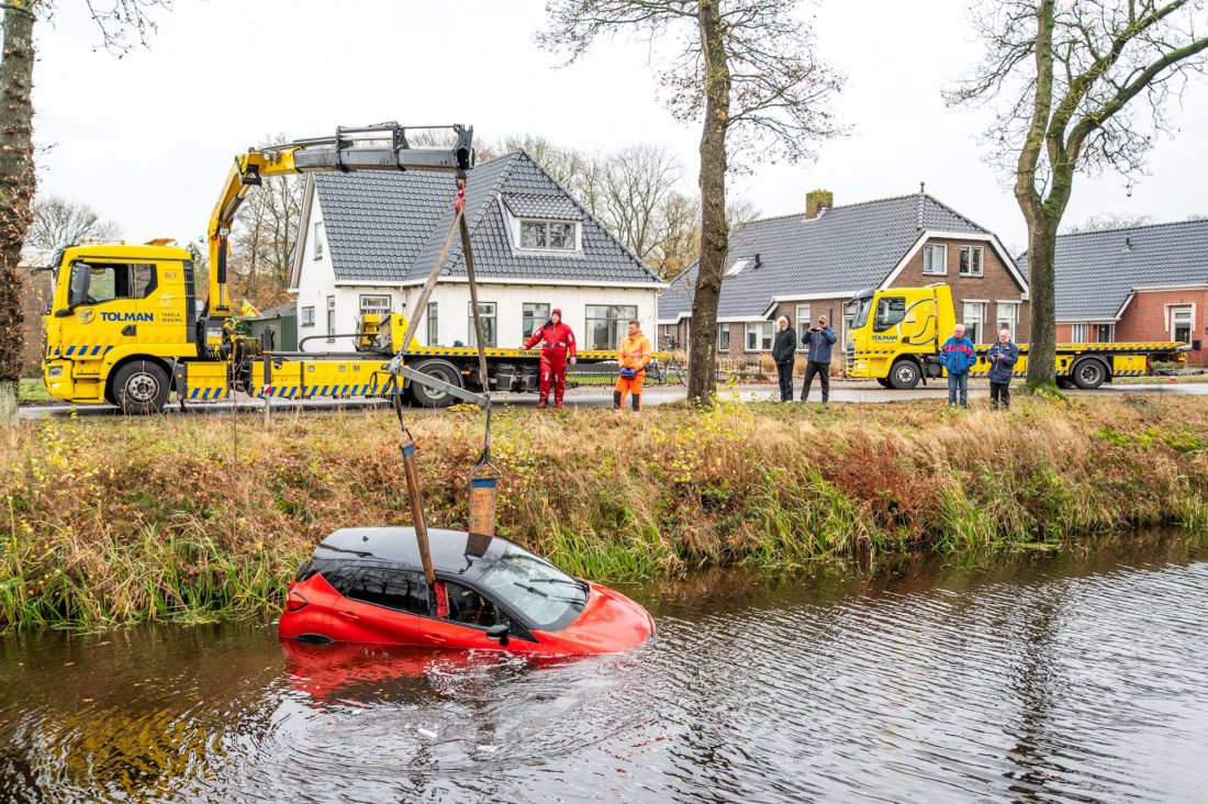 Het voertuig lag in de Bakkeveenschevaart en werd door bergingsbedrijf Tolman uit het water gehaald. Volgens de eigenaar stond de auto eerder op de oprit en is deze door nog onbekende oorzaak naar achteren gerold. Omdat het water erg koud was, verliep de berging moeizaam. De bergingsspecialist moest het water in met een waterpak om het voertuig vast te maken en uit het water te halen.