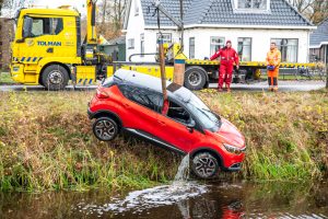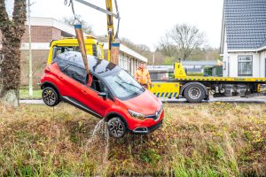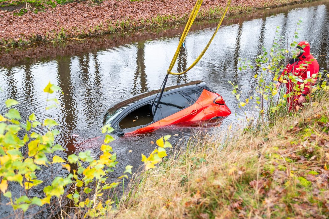 Volgens buurtbewoners is dit niet de eerste keer dat er een voertuig in het water is beland. De weg is inmiddels weer open voor het verkeer.