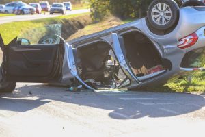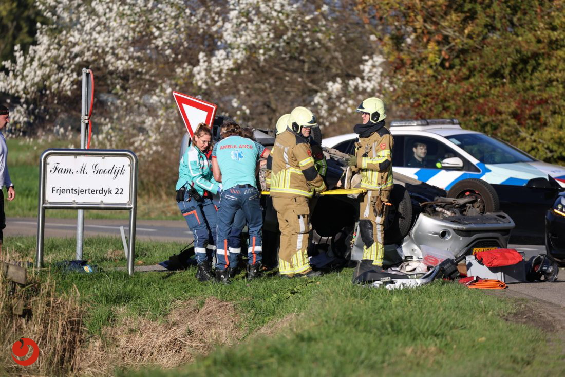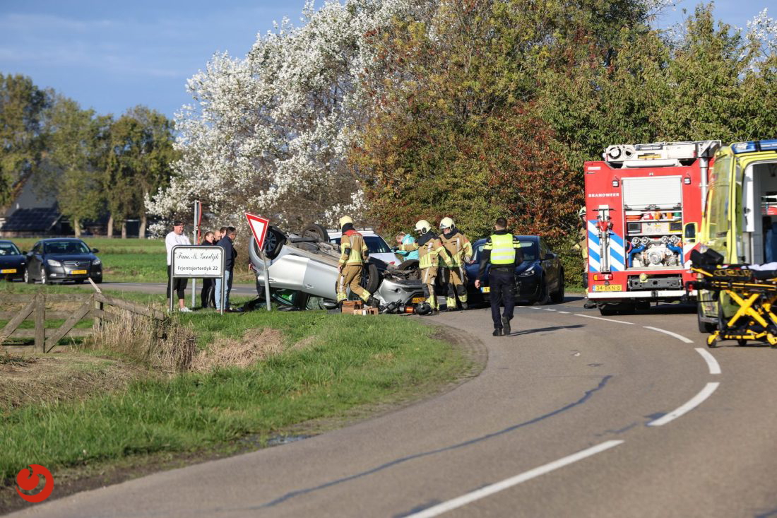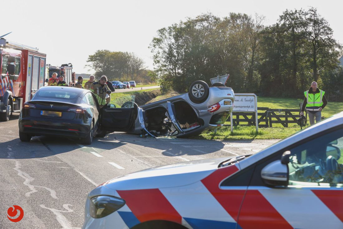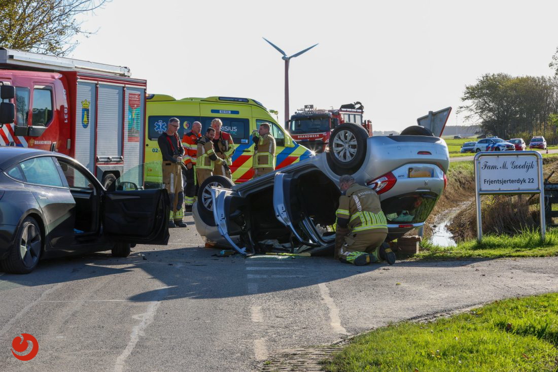 SEXBIERUM – Een automobilist is zaterdagochtend over de kop geslagen na een aanrijding op de Frjentsjerterdyk.