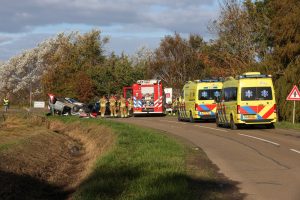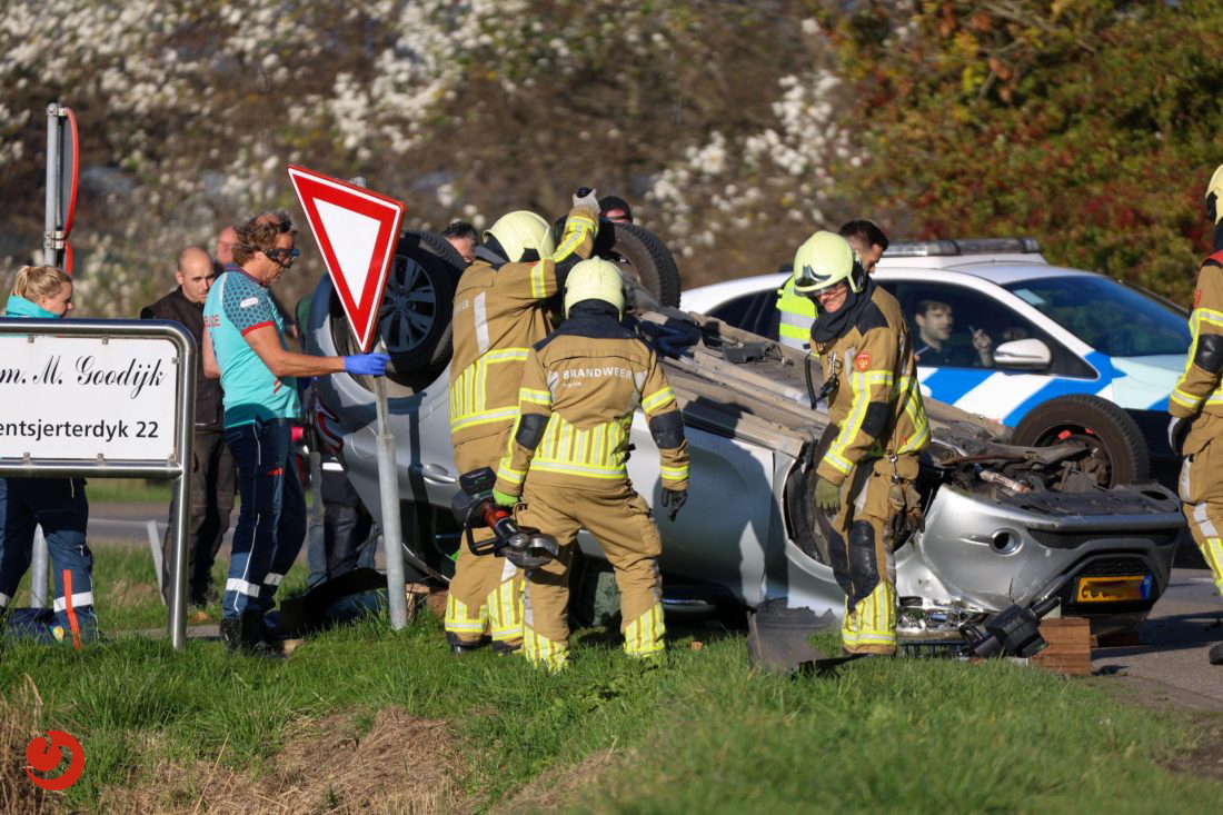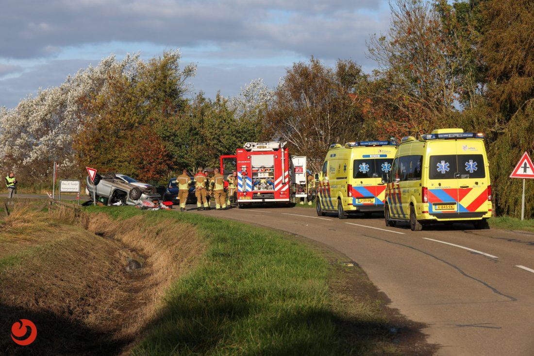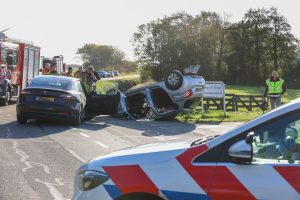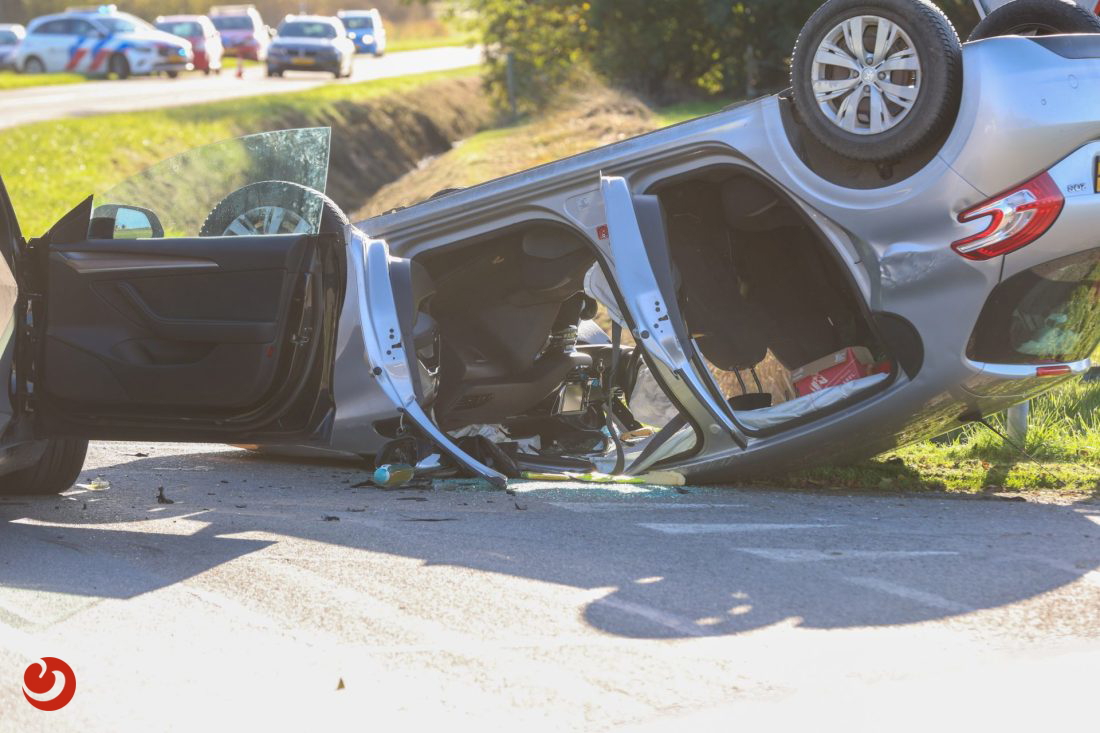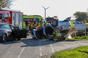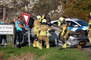 Twee auto’s kwamen even voor tien uur door onbekende oorzaak met elkaar in botsing, waarna één van de voertuigen over de kop sloeg. De inzittende van het over de kop geslagen voertuig is door de brandweer uit de auto bevrijd.