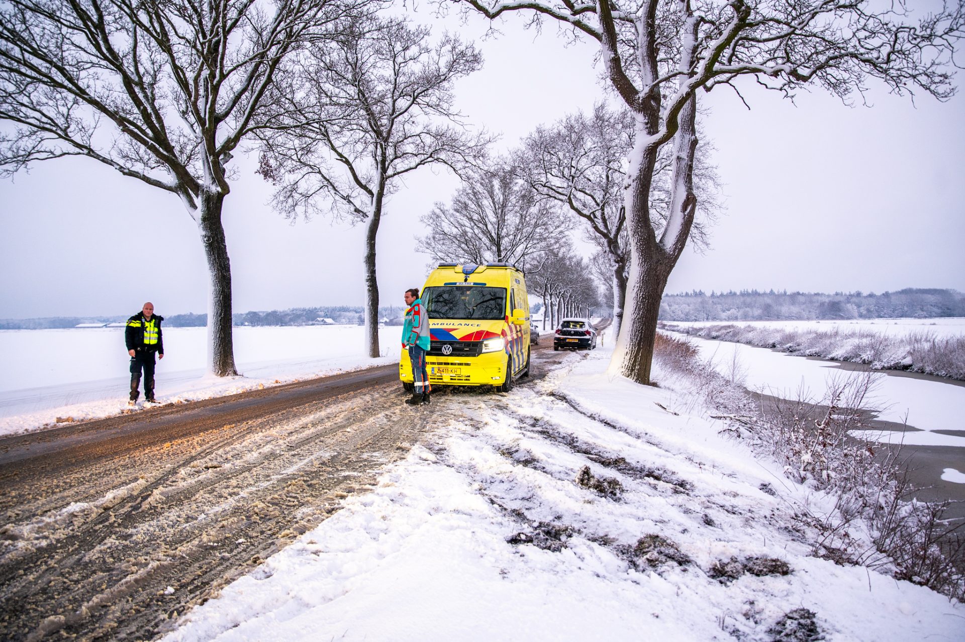 OLDEBERKOOP – Maandagochtend rond kwart over acht is op de Heerenveenseweg een auto van de weg geraakt door gladheid. Door het gladde wegdek raakte de bestuurder de controle kwijt en belandde het voertuig in het water, dat door de vorst bevroren was.