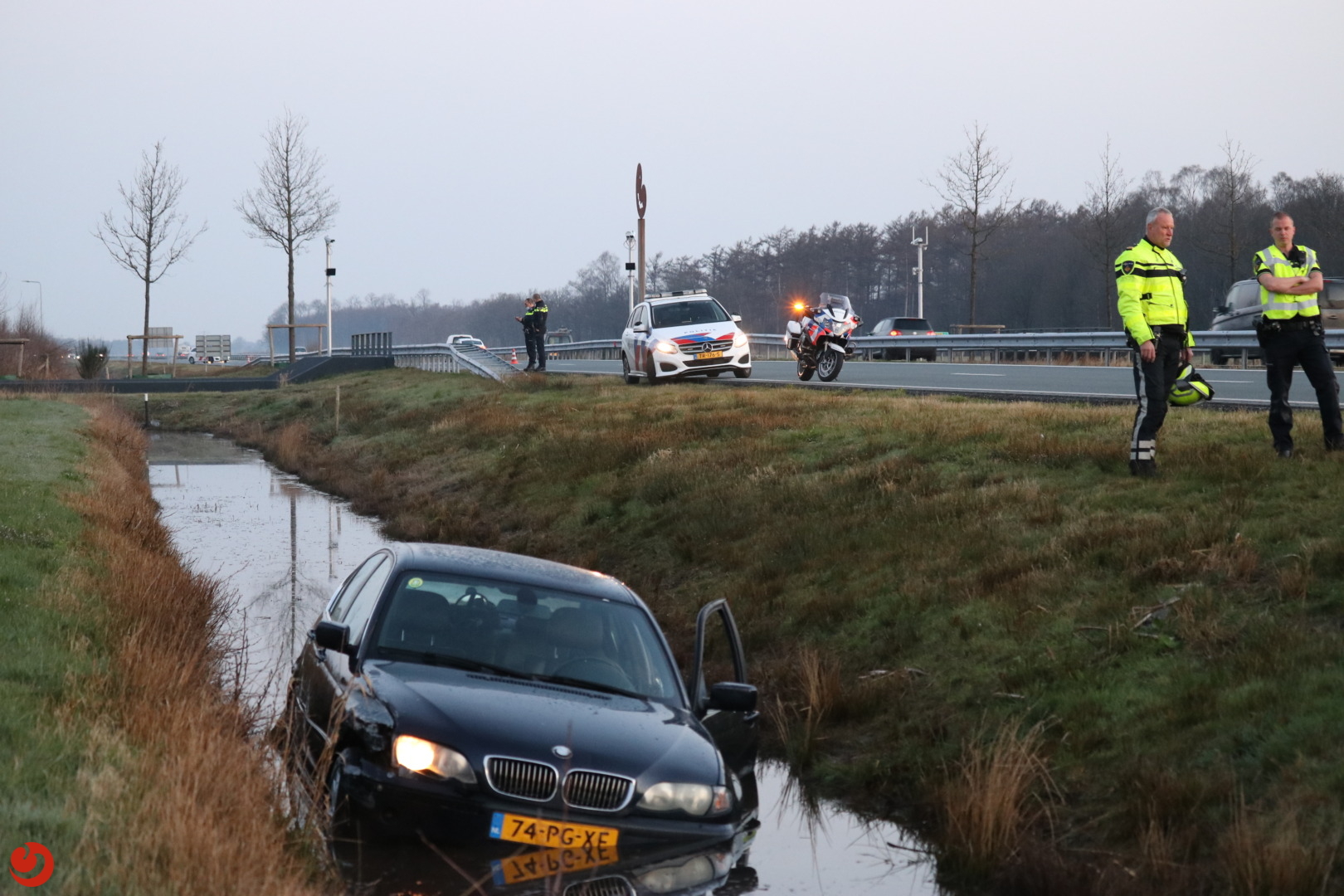 Eén rijstrook in de richting van Wijnjewoude moest worden afgesloten tijdens de afhandeling van het ongeval. De politie doet onderzoek naar de toedracht. Een berger heeft de auto uit de sloot gehaald en meegenomen.