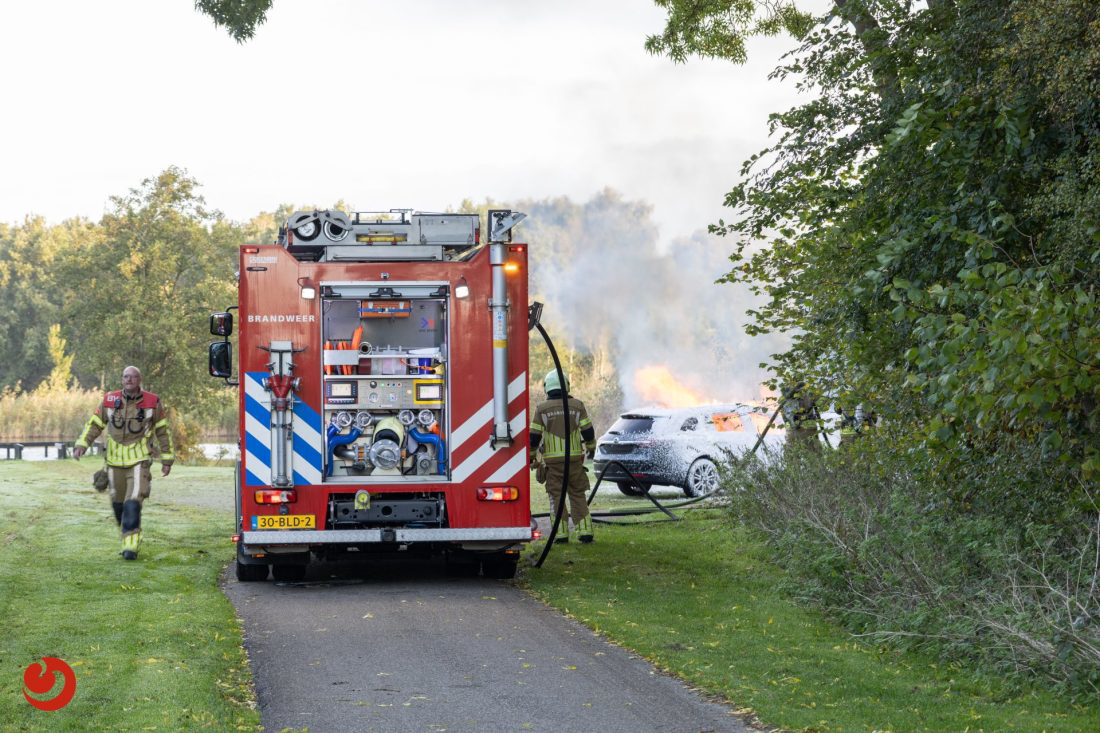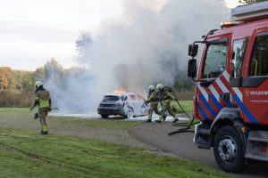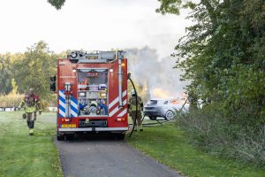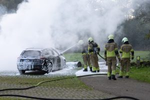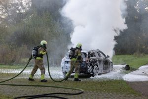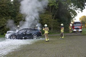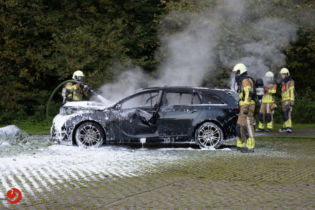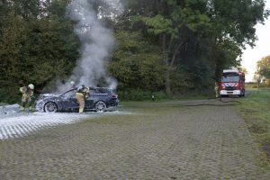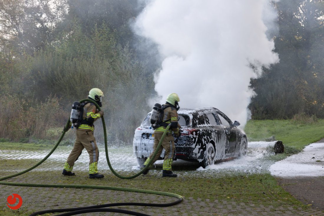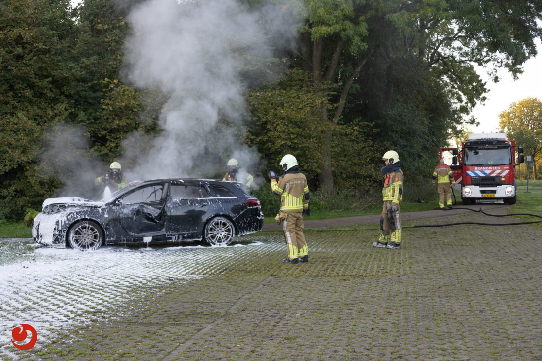 Met blusschuim was het vuur snel onder controle, maar de auto was niet meer te redden. De oorzaak van de brand is onduidelijk.
