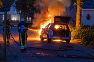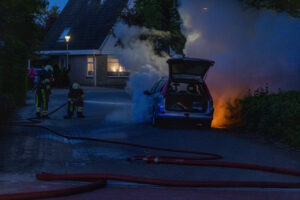 Om tien over tien in de avond werd de brandweer opgeroepen, zij gingen met spoed ter plaatse. Op de Leeuwerik stond het motorcompartiment van het voertuig in de brand.