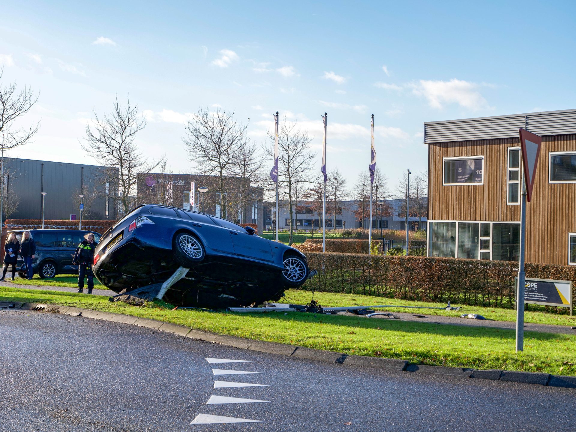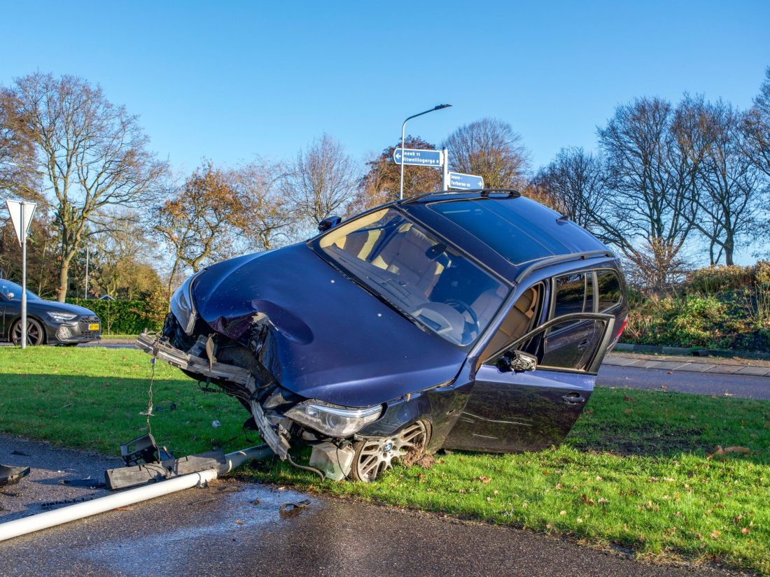 Een berger is ter plaatse gekomen om het beschadigde voertuig te bergen. De politie heeft onderzoek gedaan naar de toedracht van het ongeval.