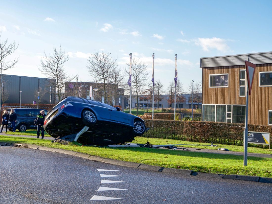 JOURE – Op de Sewei is zondagochtend een auto gelanceerd over een rotonde.