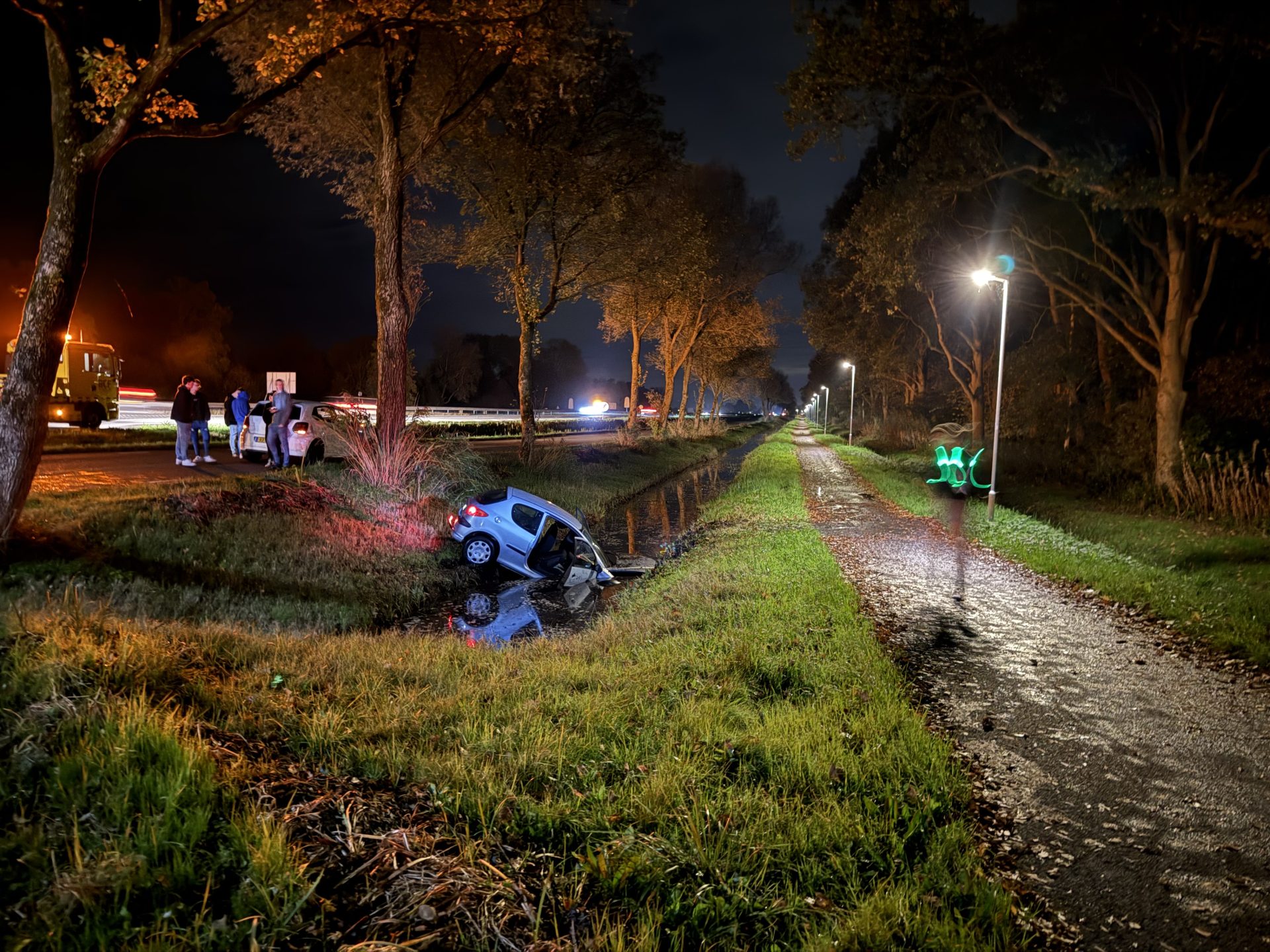 Door onbekende oorzaak raakte op de ventweg bij het Groene Ster gebied een auto van de weg en kwam in een sloot tot stilstand. Een berger heeft de zwaar beschadigde auto uit de sloot getrokken en afgevoerd.