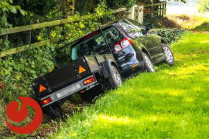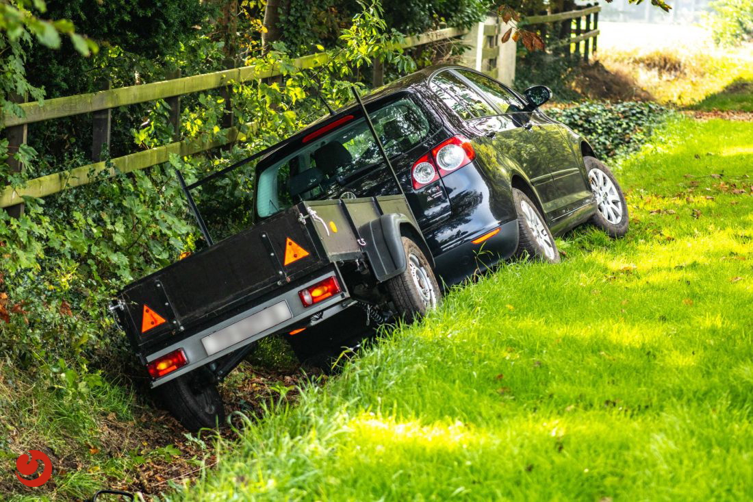 De auto en aanhanger zijn door een bergingsbedrijf geborgen.