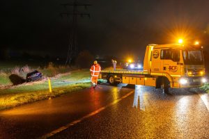 De auto raakte flink beschadigd en is afgesleept. Voor het afslepen van de auto is de toerit tijdelijk afgesloten geweest.