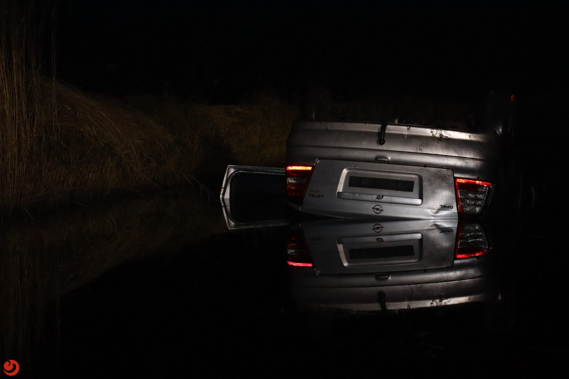 Het ongeval gebeurde rond kwart voor tien op een onverharde weg. De automobilist raakte door onbekende oorzaak van de weg en kwam op de kop in de sloot tot stilstand. Volgens een paar omstanders is de man zelfstandig uit zijn voertuig geklommen. Ondanks kwamen diverse hulpdiensten in actie om te zoeken naar eventuele slachtoffers.