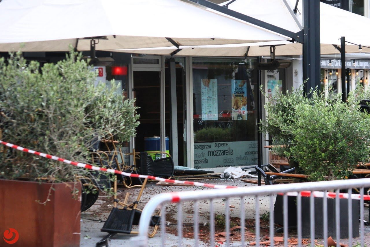 Video: Auto rijdt over terras en ramt pand Domino’s Pizza; Drie verdachten aangehouden in Twijzel