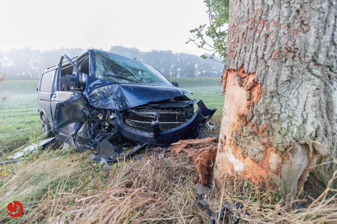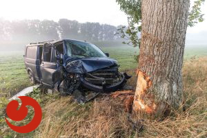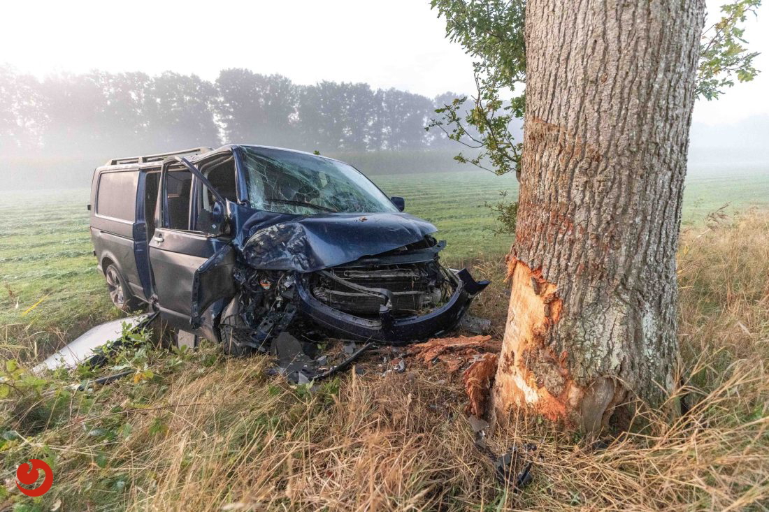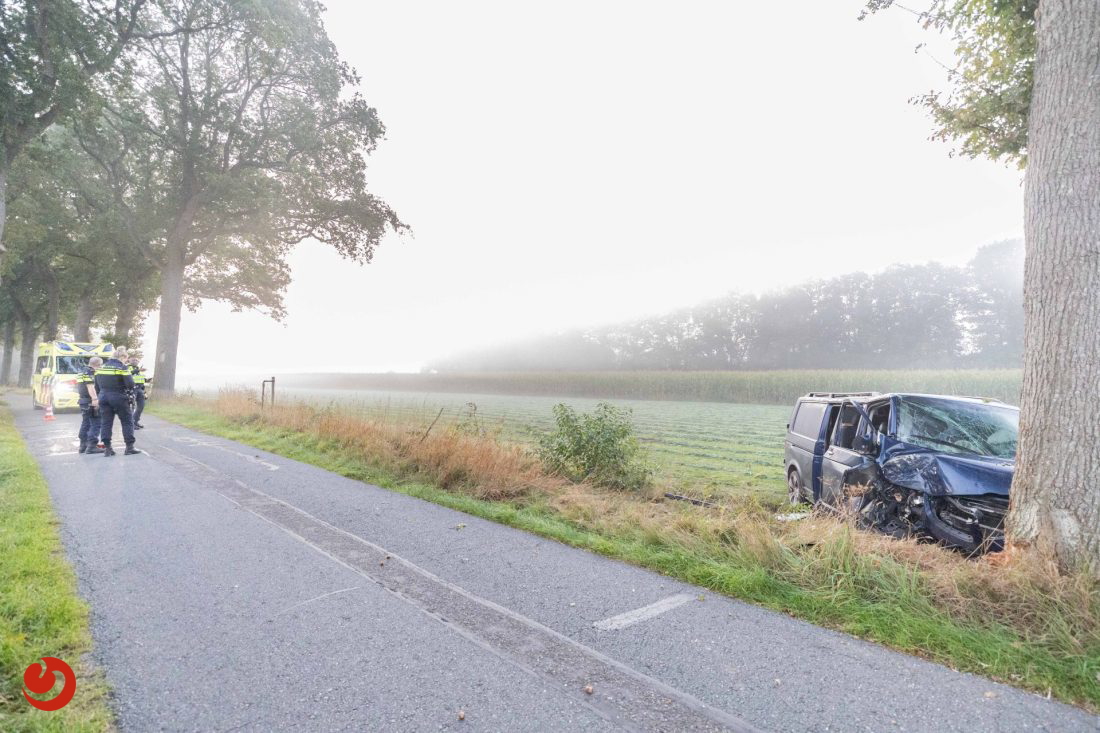 VINKEGA – Een bestelbus is maandagmorgen tegen een boom gebotst aan de Westvierdeparten.