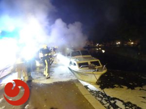 De brandweer van Heerenveen is met spoed ter plaatse gekomen met een tankautospuit en een hoogwerker. De brand was snel onder controle. Veel spullen en spuitbussen zijn van de boot gehaald nadat de brand geblust was.