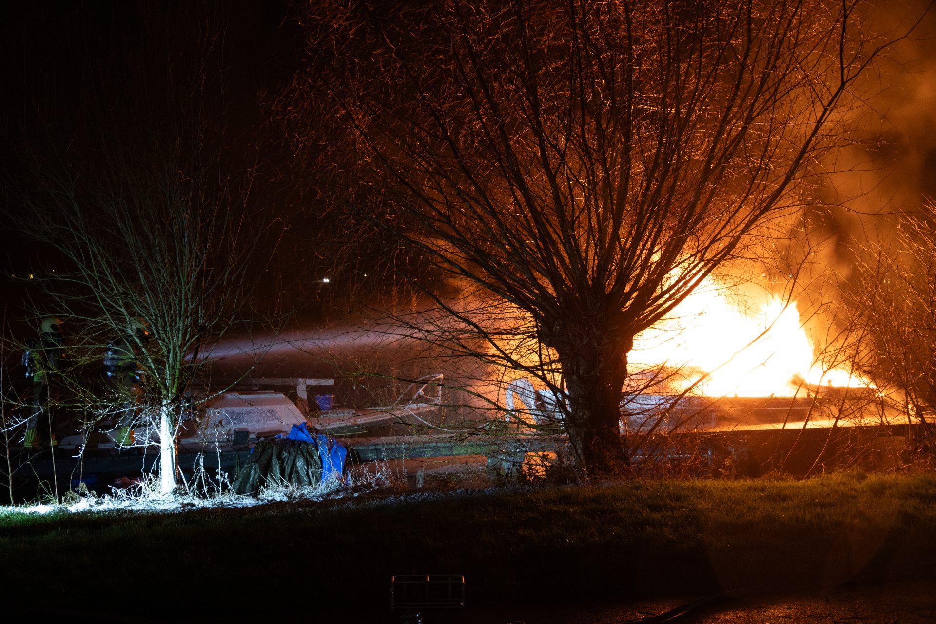 Politie en brandweer hebben omwonende gevraagd of er misschien iemand op de boot aanwezig kon zijn, voor zover bekend was dit niet het geval. De brandweer is enige tijd bezig geweest met het blussen en nablussen.