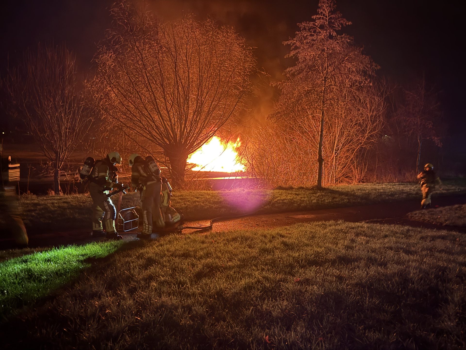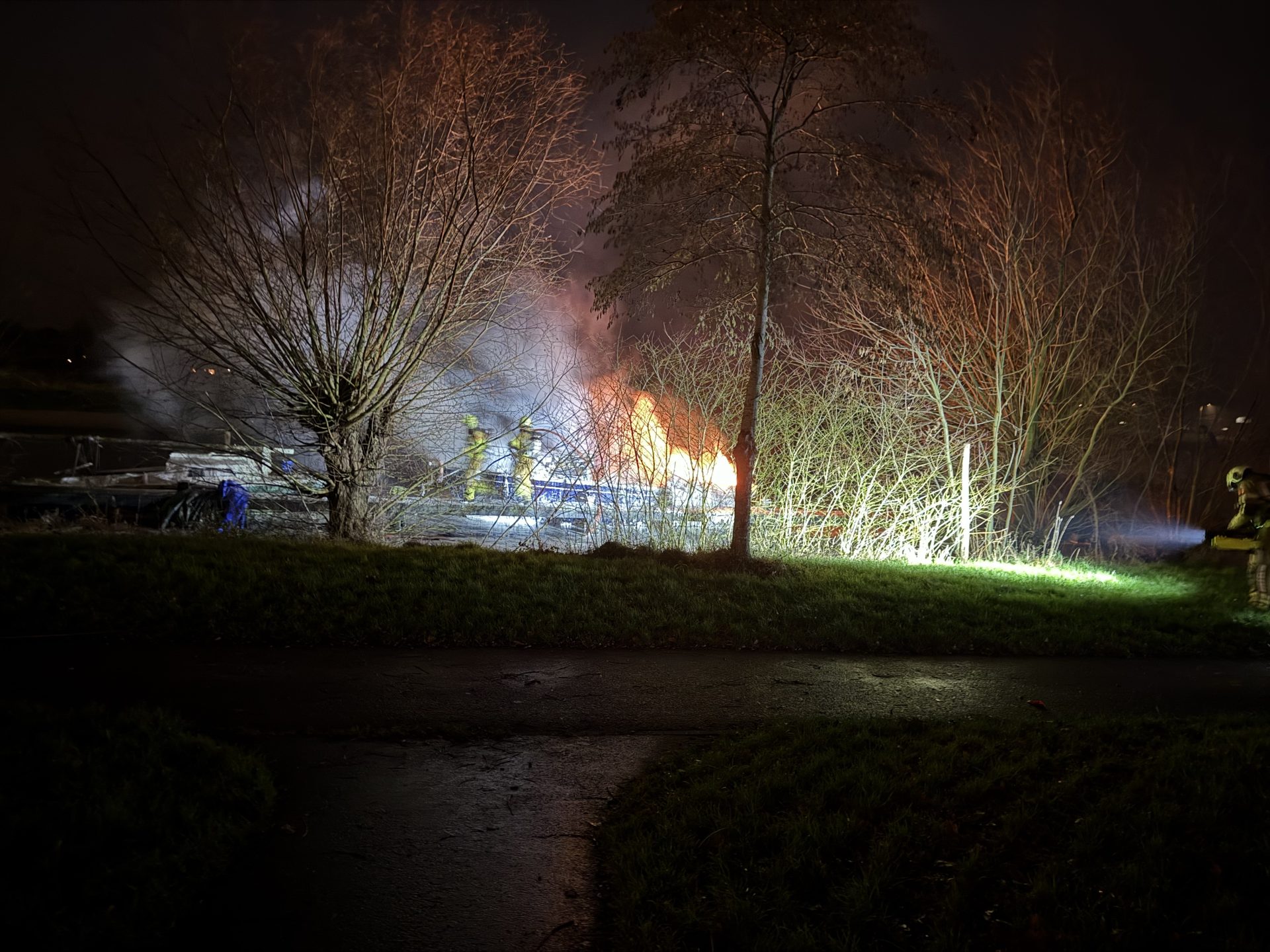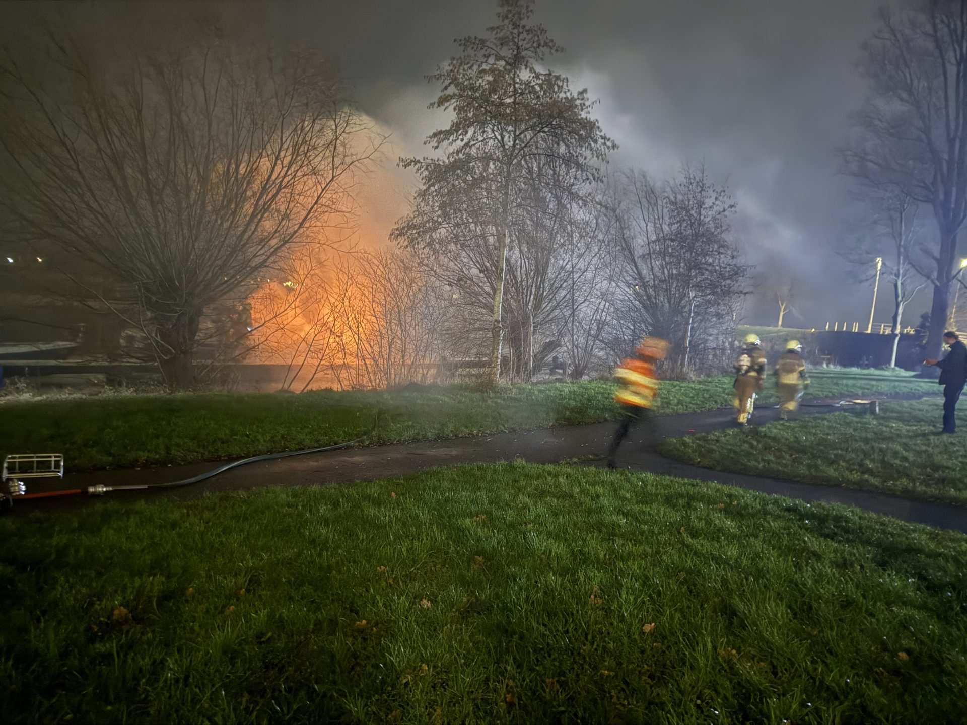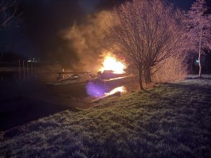 De brandweer kwam met spoed ter plaatse op de Lekkumerweg wat de dichtstbijzijnde locatie was. Bij aankomst stond de boot al in lichterlaaie en was er weinig meer aan te redden.
