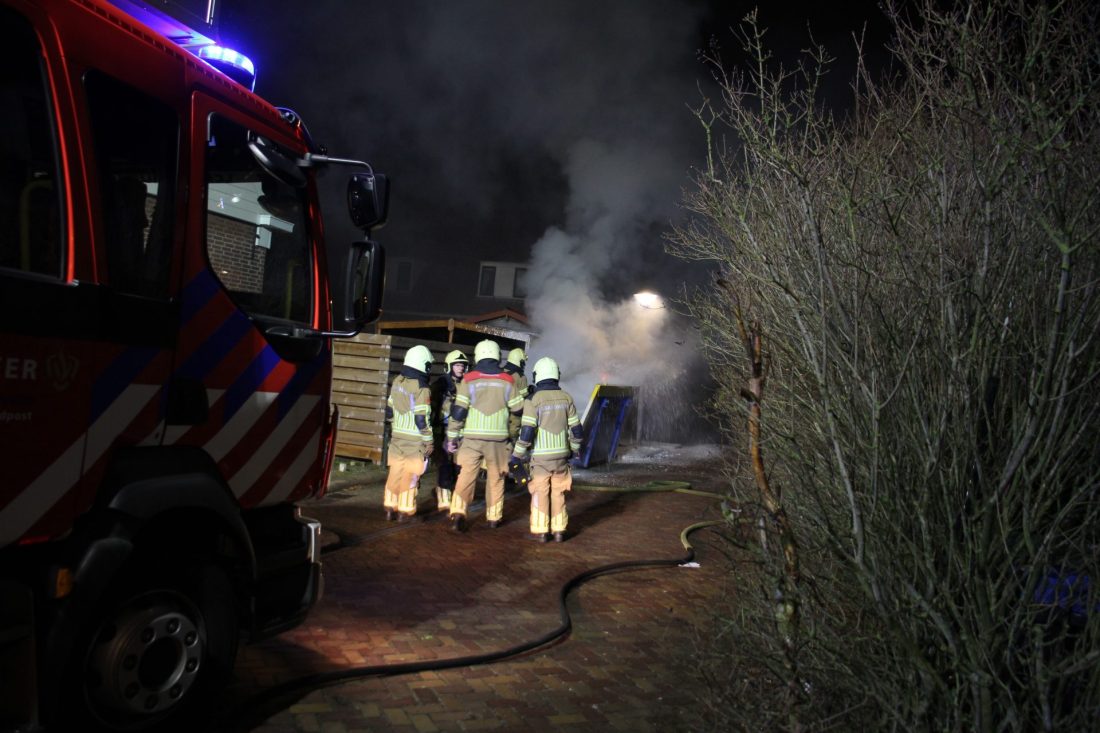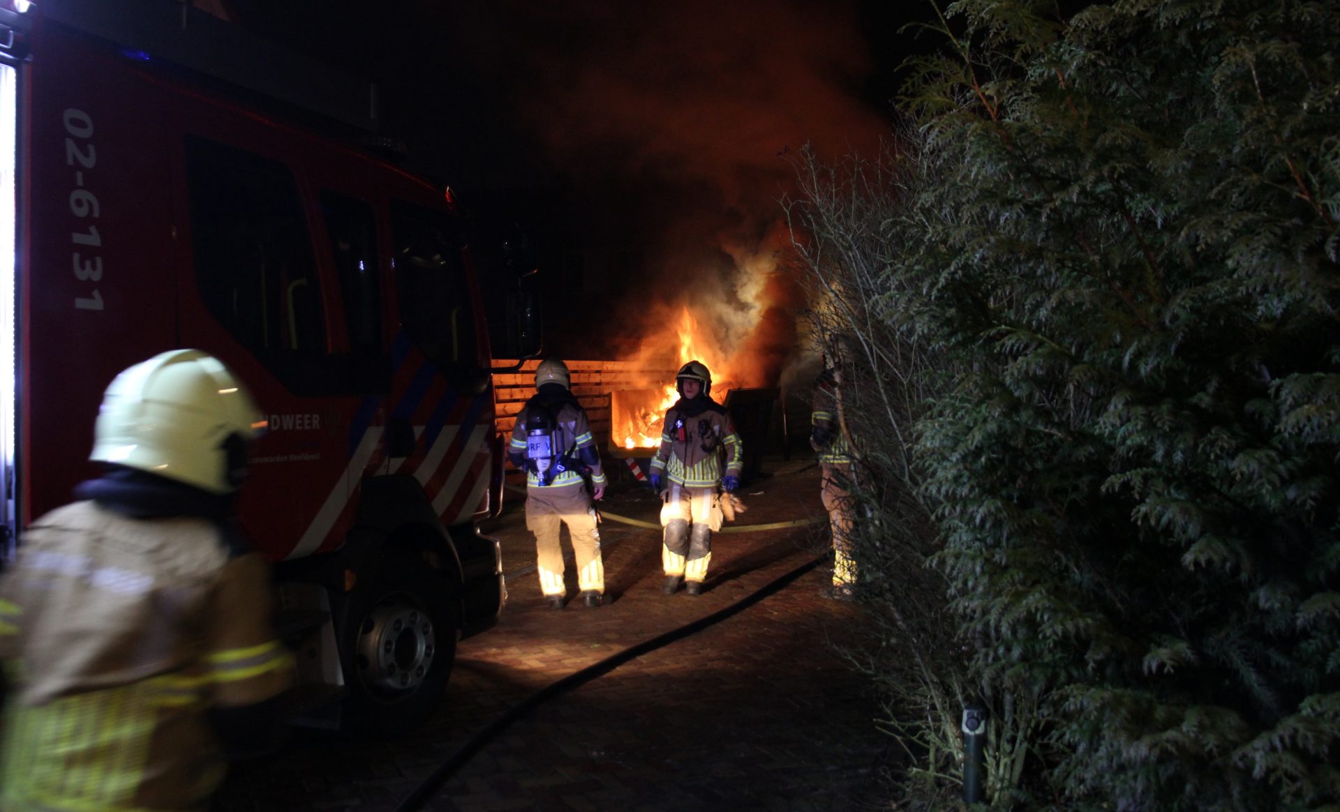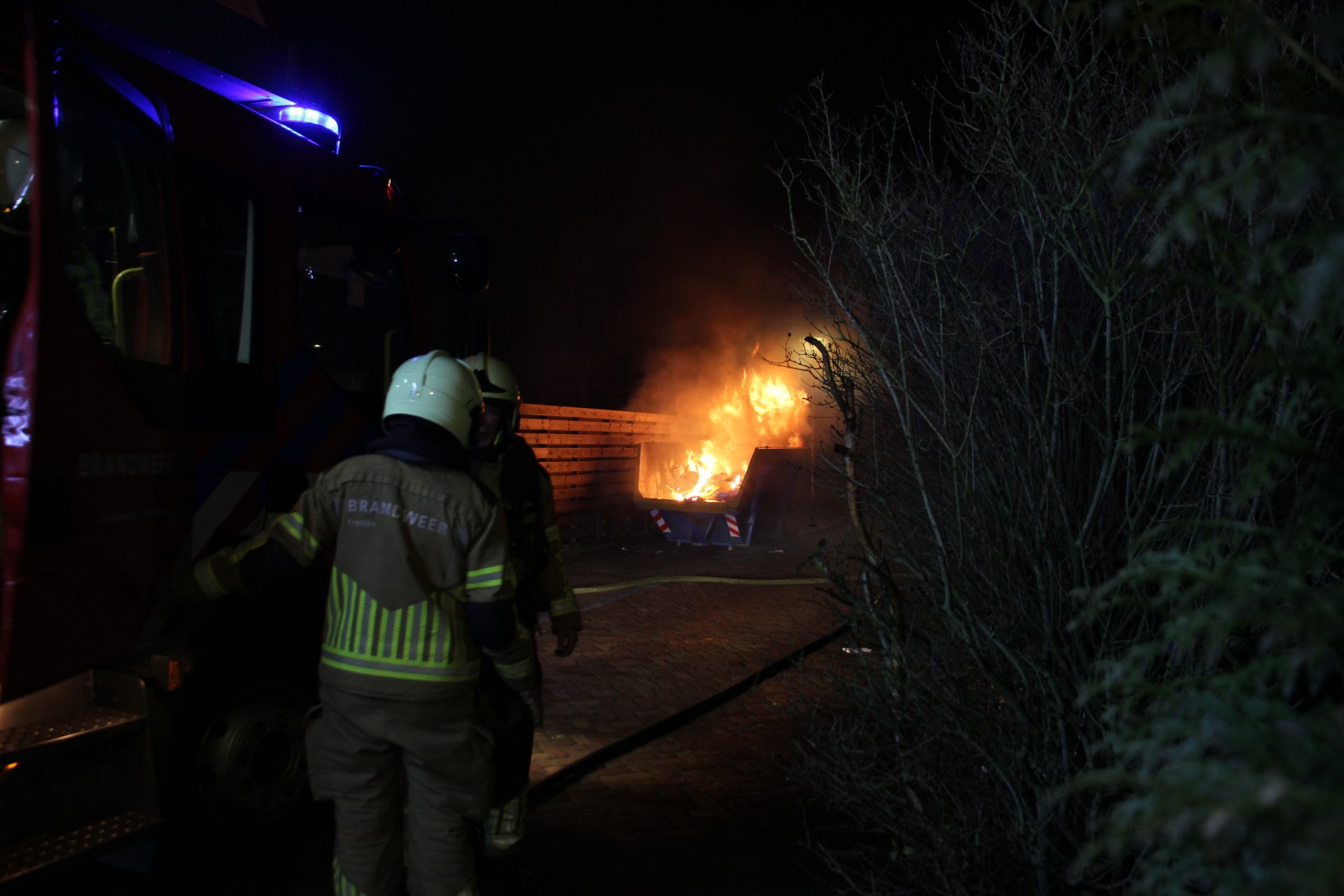 Bij aankomst van de brandweer sloegen de vlammen uit de bouwcontainer en straalden de schutting al aan waar de container tegenaan stond. Met blusschuim werd een eerste aanval op het vuur gedaan om overslag naar de schutting een een overkapping/schuur te voorkomen.