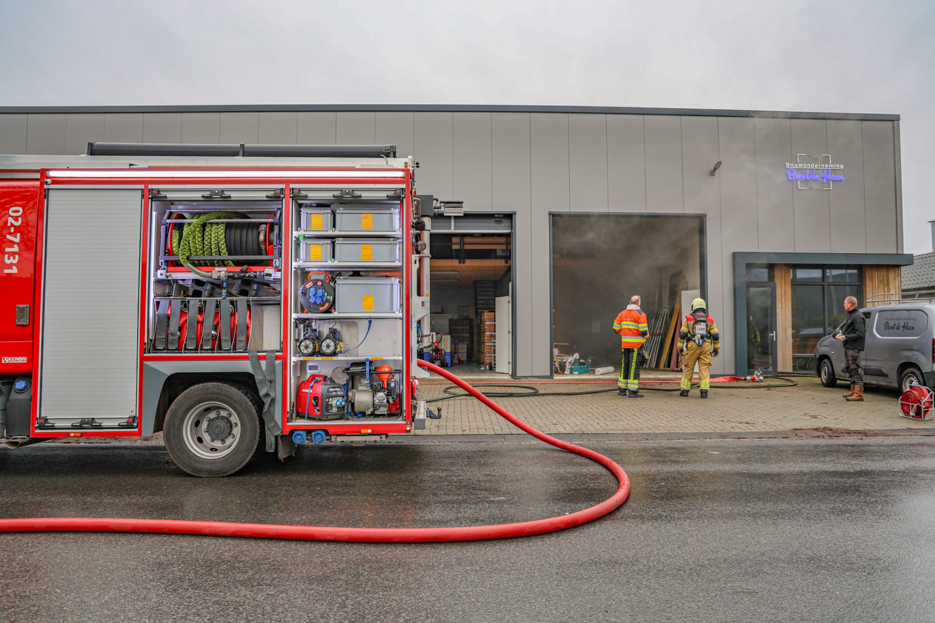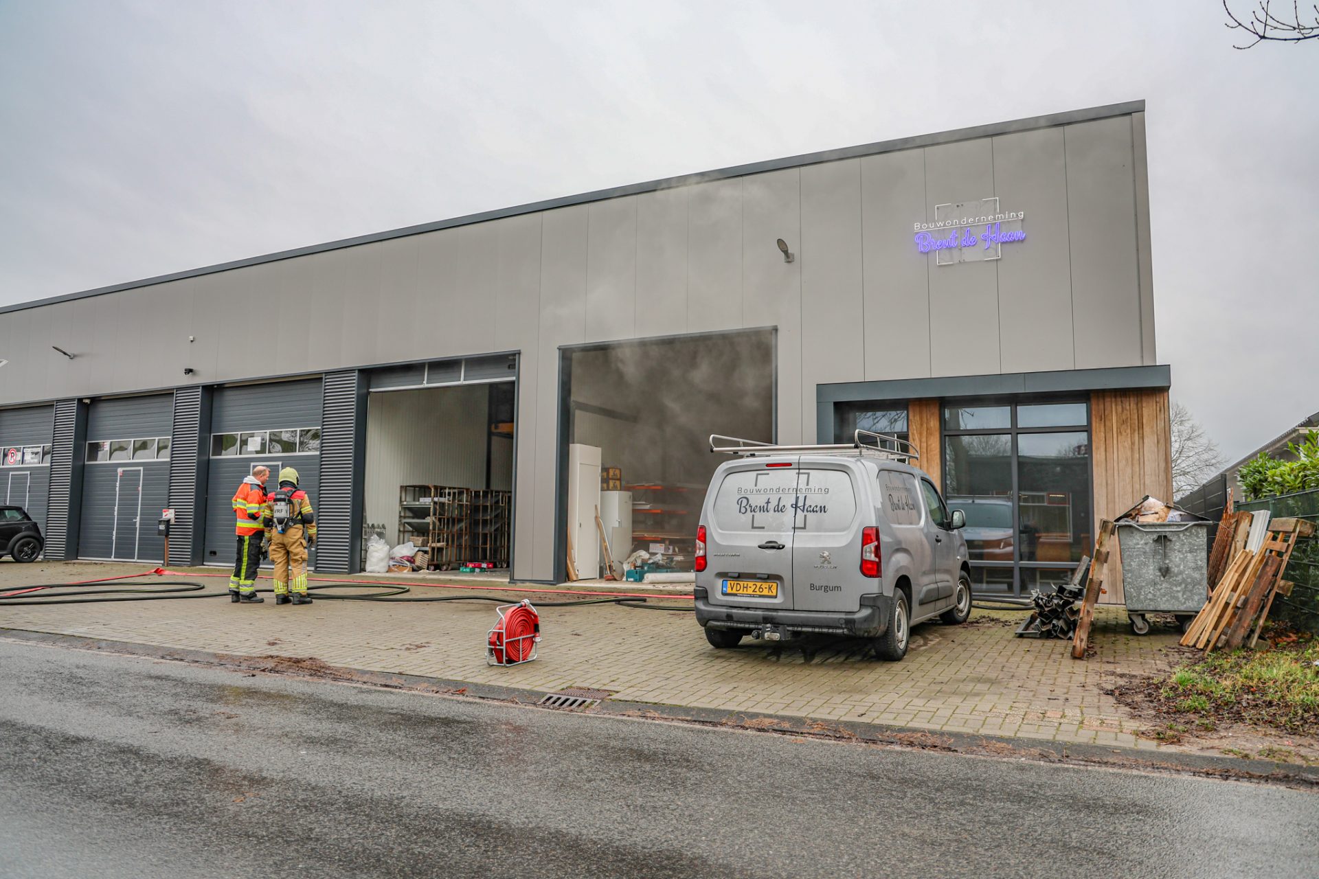 BURGUM – De brandweer kreeg donderdagmorgen een melding van een brand in een bedrijfspand van een bouwonderneming aan de Mr. W.M. Oppedijk van Veenweg.