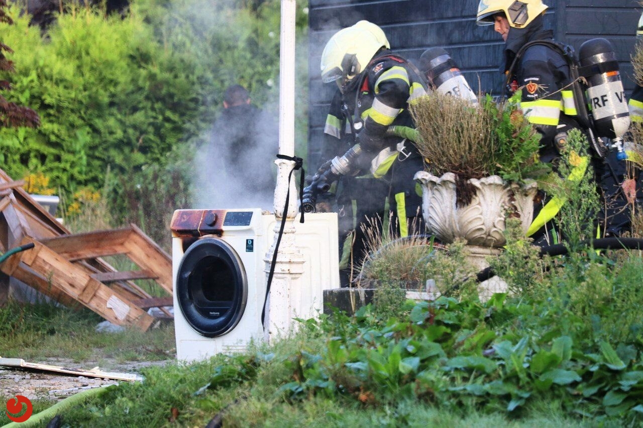 In een wasmachine/wasdroger die achter in het washok stond, brak door nog onbekende oorzaak brand uit. Door het snelle optreden van de brandweer kon uitbreiding worden voorkomen. De brandweer heeft de wasmachine/wasdroger naar buiten gebracht en geblust. Wel liep het washok rookschade op. Het washok is geventileerd door de brandweer.